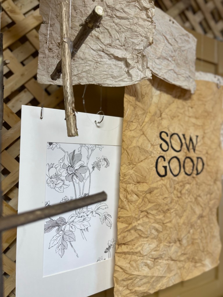 Now, let’s start hashing out the third display, Sow Good, Reap a Harvest. Starting with the original concept sketch.