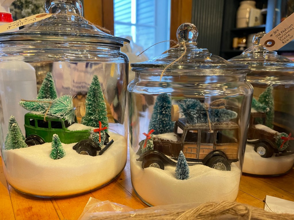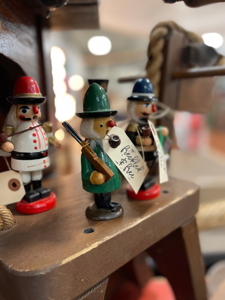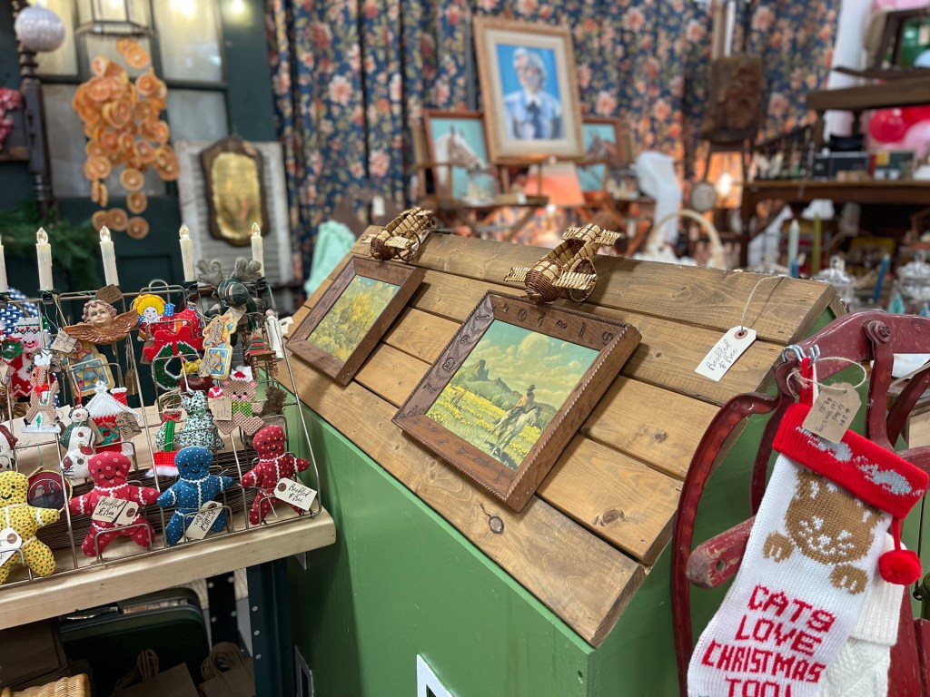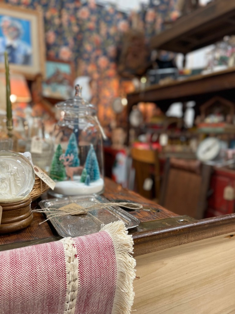 Replicas of antique tree candles throughout for decoration and ambiance. Vintage hand-picked ornaments of plenty for purchase.