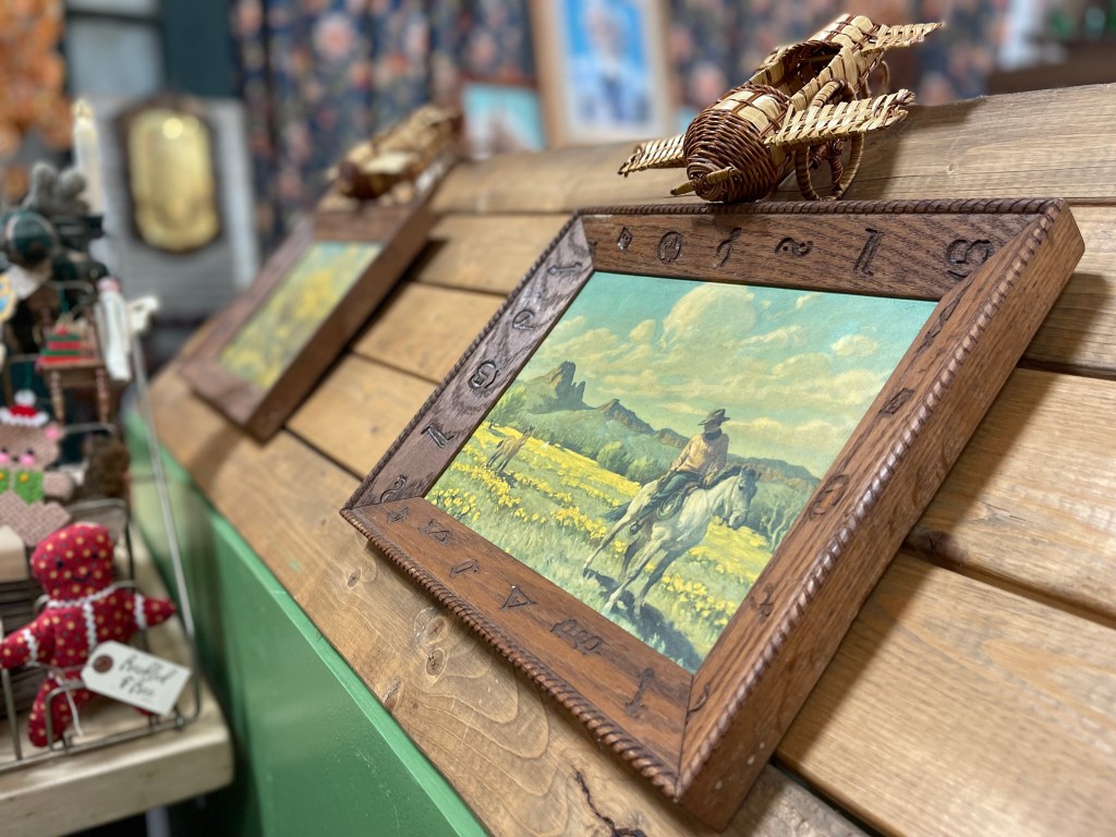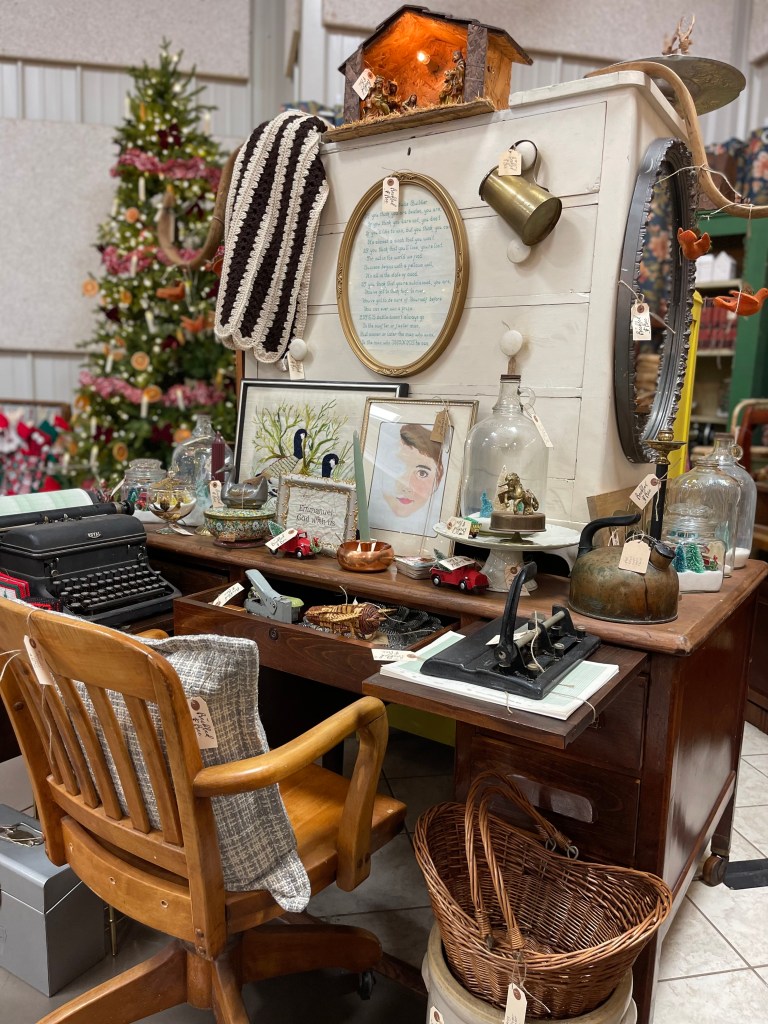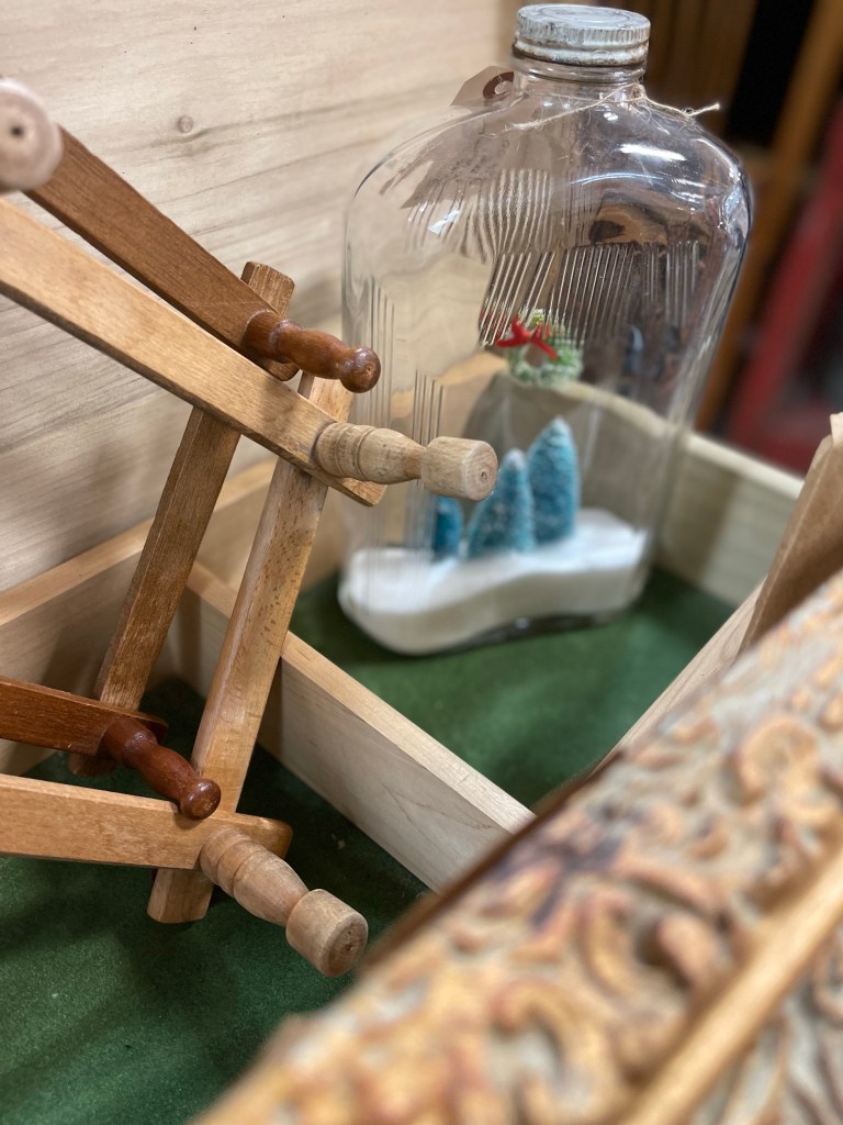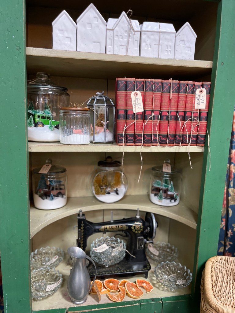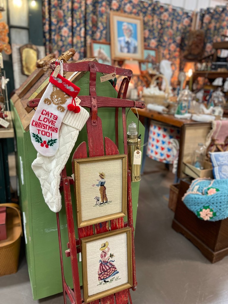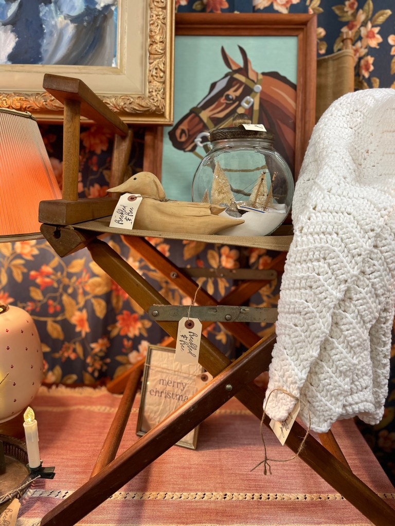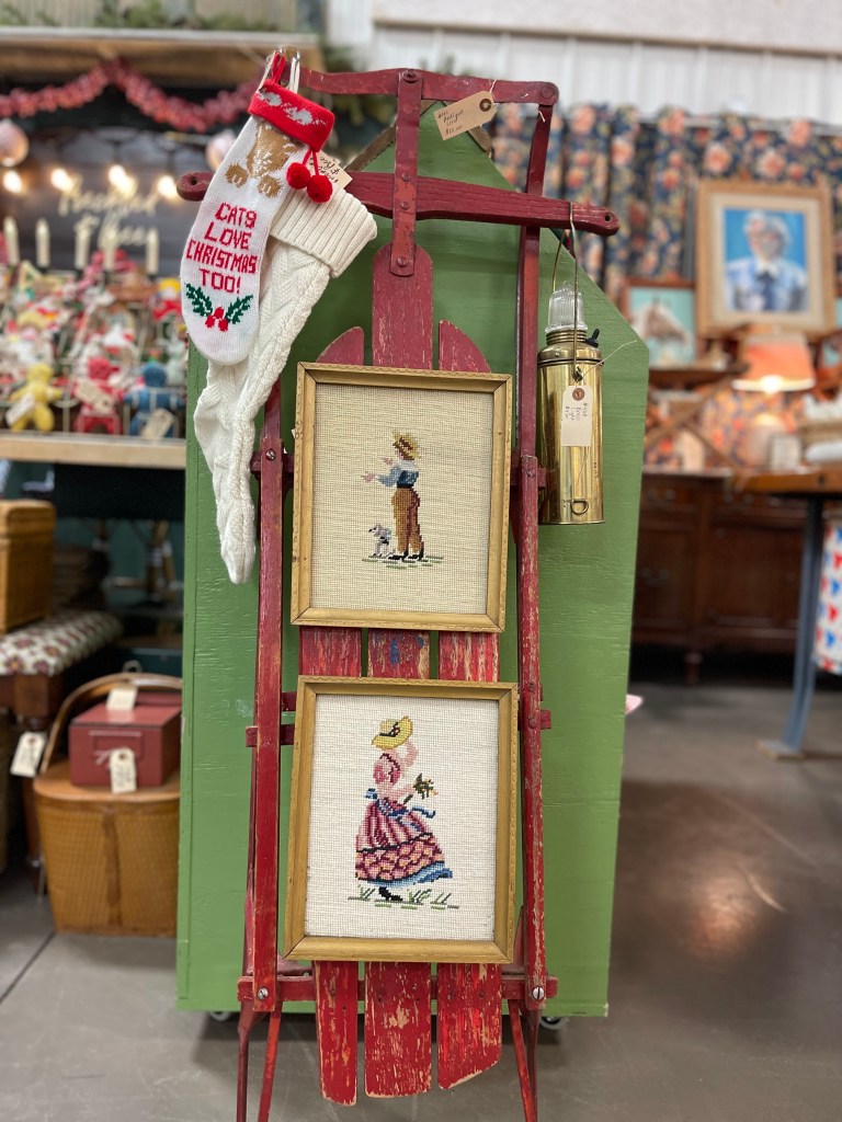 Creating little holiday scenes for that dreamy Christmas feel made it all so special. We spent a lot of time looking for vintage and antique glass jars with lids where I could make these. Some with deer and pine trees, others with vintage trucks on tree farms and my favorite scene were the tiny ships I pretended had frozen in the water upon the rocks. As a child little Christmas scenes were my favorite things that made me get lost in wonder. We spent so many hours making many beautiful things leading up to the market and I’m a little bummed I didn’t get alone shots of all of them. From the One Way Sign we turned into a rolling cabinet with shelving inside and even added lighting, to the small wooden kitchen island we made from old work bench legs and a gorgeous wood top we picked up at a yard sale, bird cages turned into lovely nativity scenes, to the gorgeous re-fabriced boho bench. Honestly, there is just way too many good stories to share on all the goodies we were able to bring. From making my own tags and framing custom artwork with holiday sayings was…just. plain. fun. And I know I keep saying it’s so fun, but it’s simply true! All my favorite things. We spent lots of hours cleaning, tagging and pricing beforehand to have everything ready for market opening.