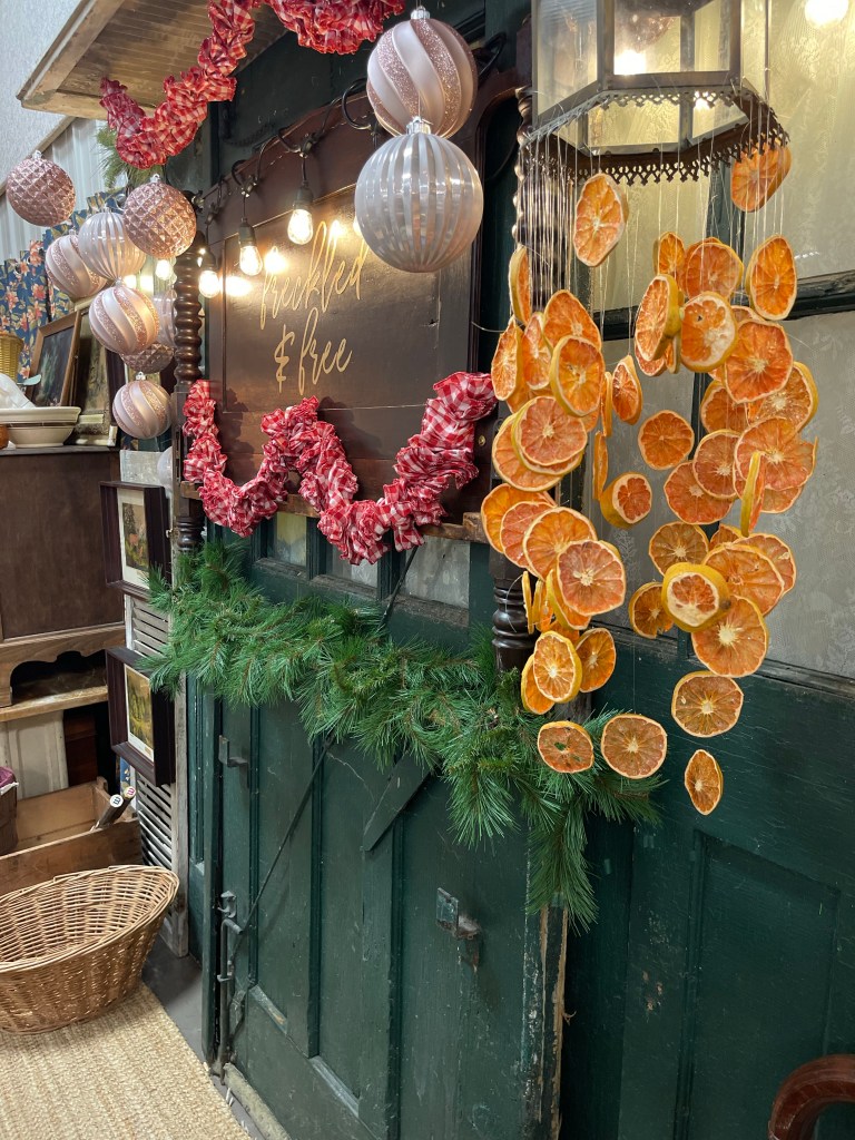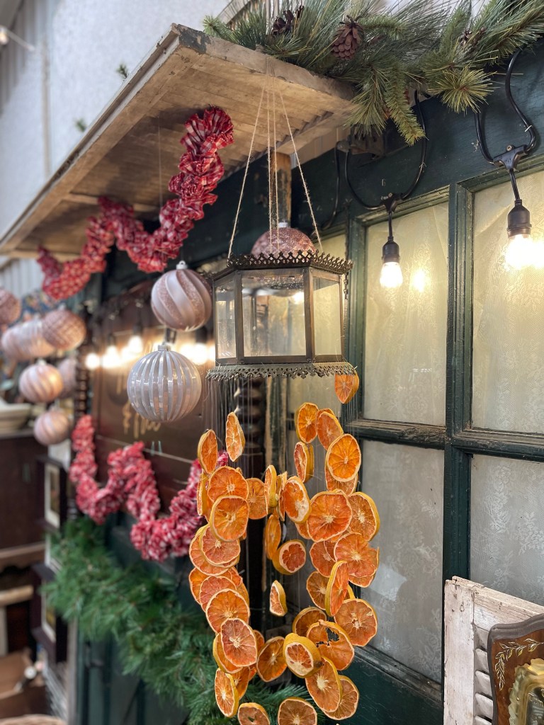 We spent many hours and a few days dehydrating dried grapefruit to use in decorating the booth. I wanted it to feel like the Christmas’s of the past. Cozy and warm. Using what they had to decorate the tree. I backdropped the space with a rich vintage looking curtains to create an inviting space, and worked to mix textures and patterns throughout. We resolved to bring balance with so many different objects to look at. Together we wanted people to feel excited to come to our booth and discover something they would treasure. We heard plenty of people sharing stories of it reminding them of this or that which is exactly what we want. Nostalgia.