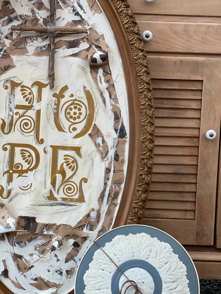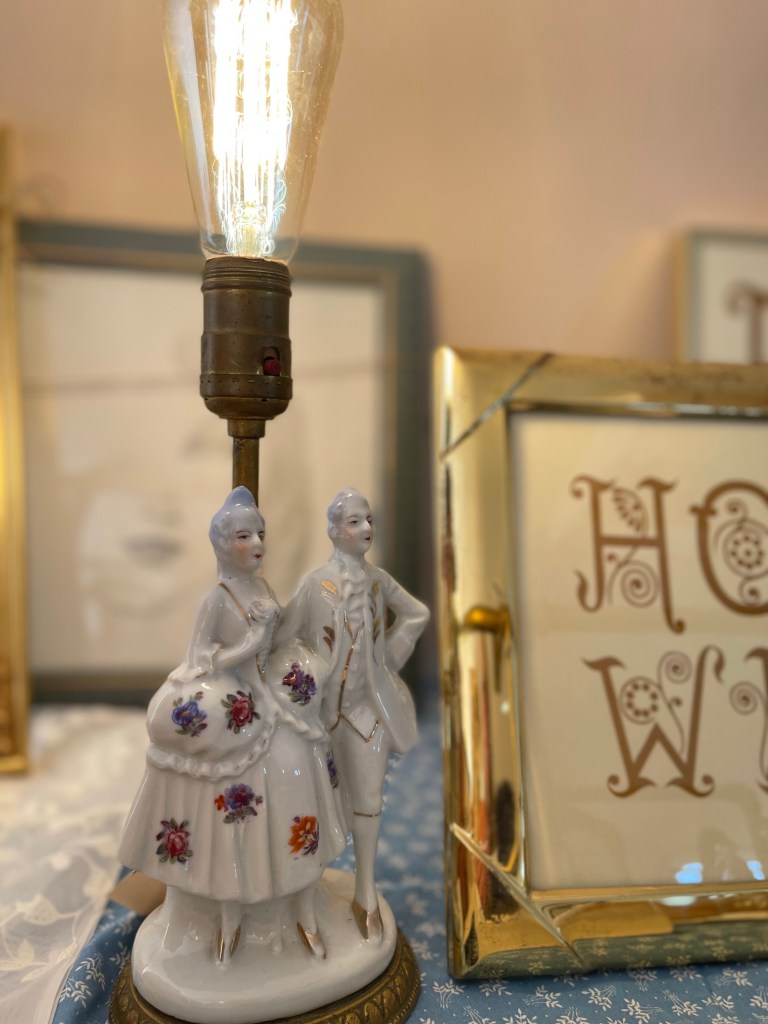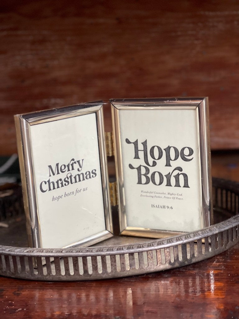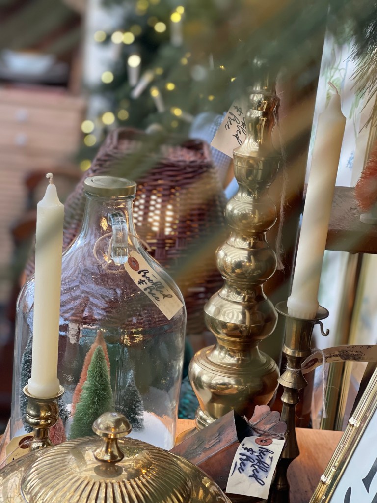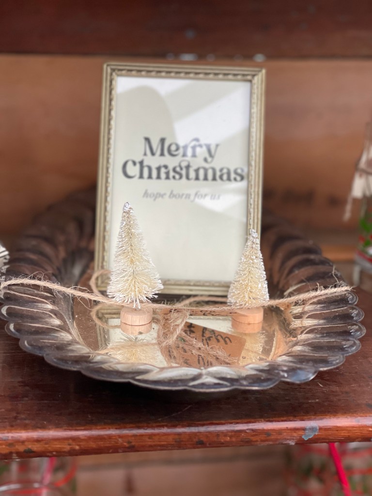 I tried to keep the booth focused on the beauty of Christmas in a simple, natural way on the outside of the airstream. Simple blues, creams and oranges. Brass, silver and dainty finds scattered throughout with a Christmas tree adorned in only vintage looking tree candles to create a cozy feel. The simplicity of the greenery and glow of the candles was all she needed. Many Freckled & Free custom birdcage nativities and artwork sprinkled throughout to create the overall feels of the season. A large focal wall of blue, green and white floral wall paper sheets, centered with the “Hope Born” graphic to ground the outdoor booth design. Wintery florals and things that shimmer and shine. I wanted Jesus to be the story even amongst antiques and vintage goods. Hope can be found here. Feliz Navidad.