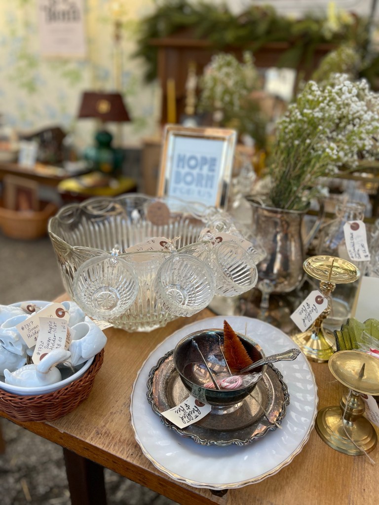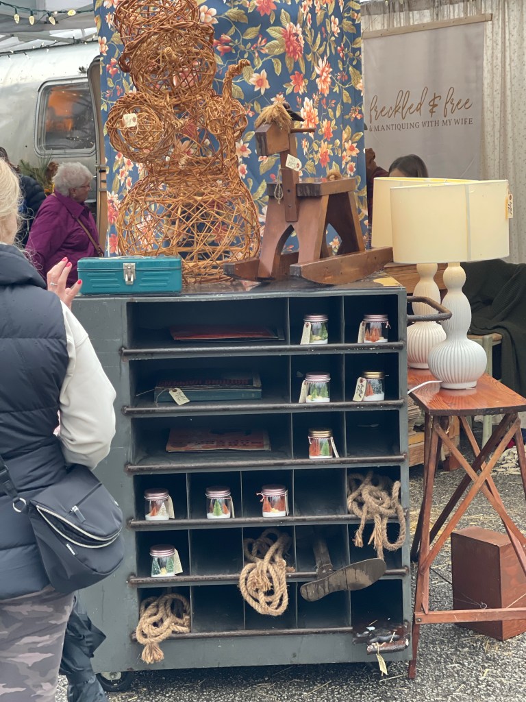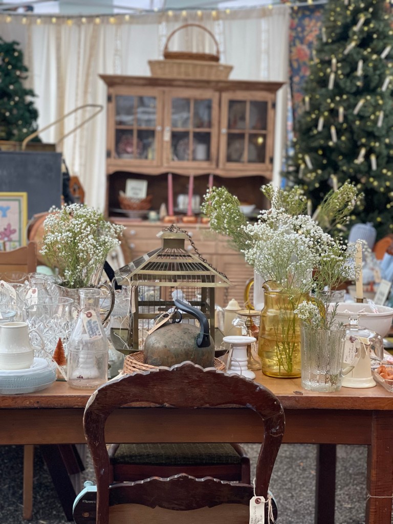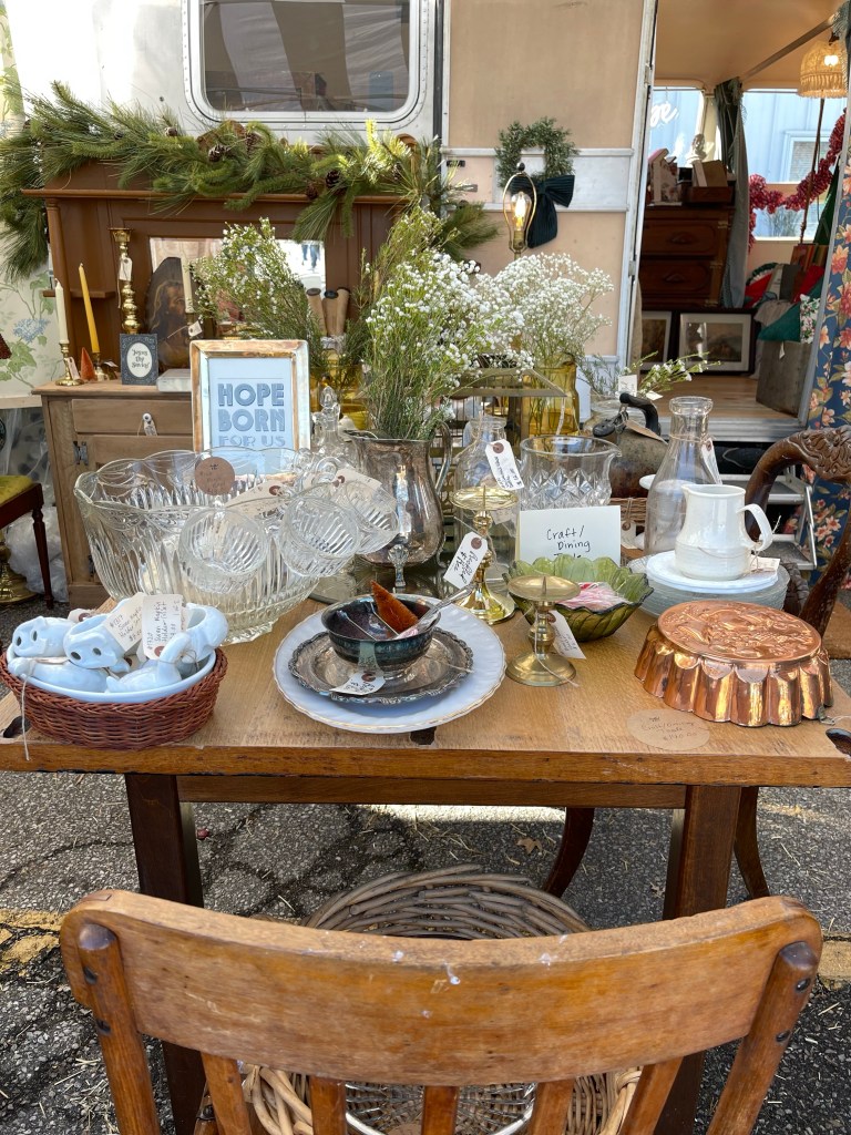 Per usual we worked hard prepping for weeks prior to the market. Pricing, picking, all the things. Booth set up always requires multiple trips, multiple loads, multiple lifting of lots of furniture and things for multiple days. And, this time, extra prayer of pending potential weather.