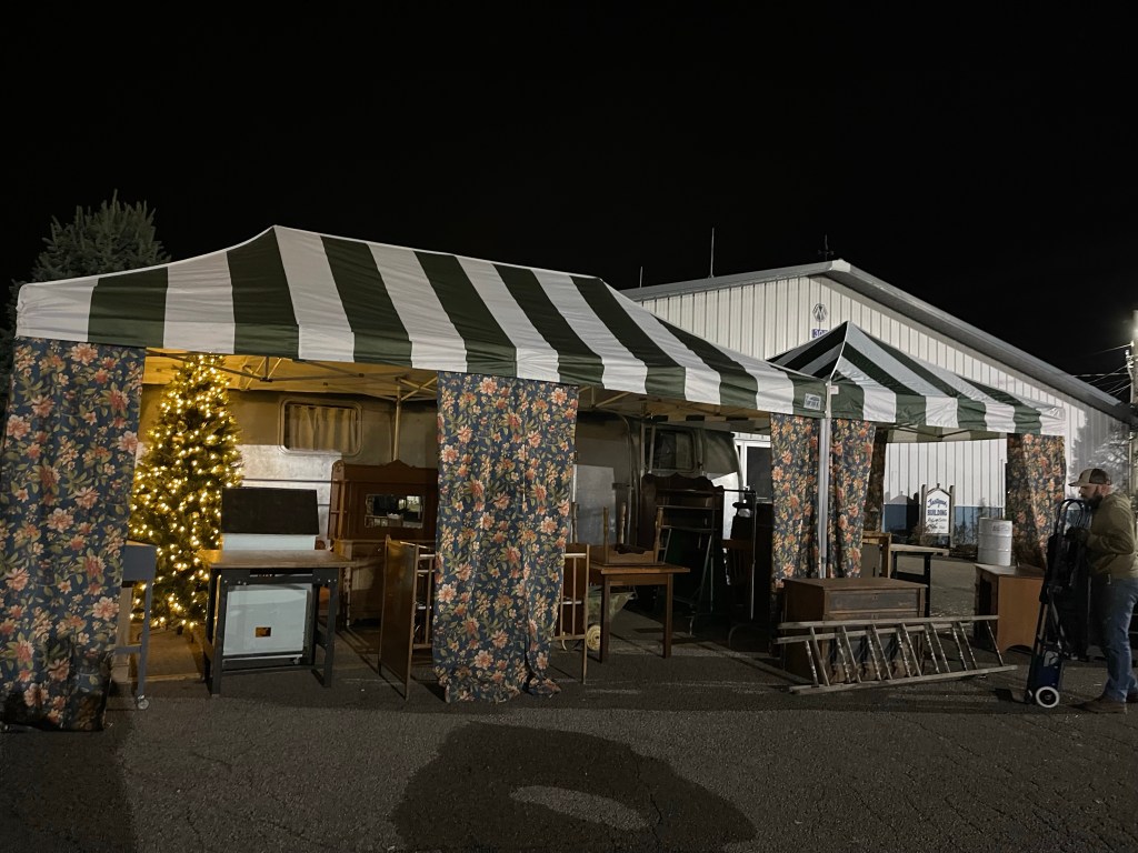 November came quick and with hopeful hearts, we once again set out to deck the halls of of our tented booth and airstream. With only our second year under our belts, learning the ropes of the vendor life is proving to be an ongoing process. Each time we are picking up some new tips for ourselves on what to do better next time. It hadn’t even crossed our mind about the fact that winter time brings back the good ole’ time change. So while last winter we were warm and setting up in the barn, this winter we braved the great outdoors. With winter on the brink, the challenges were set against us. Most of the initial setup and drop off of the “bigs” were conducted in the dark and chill of the night creeping in much too soon.