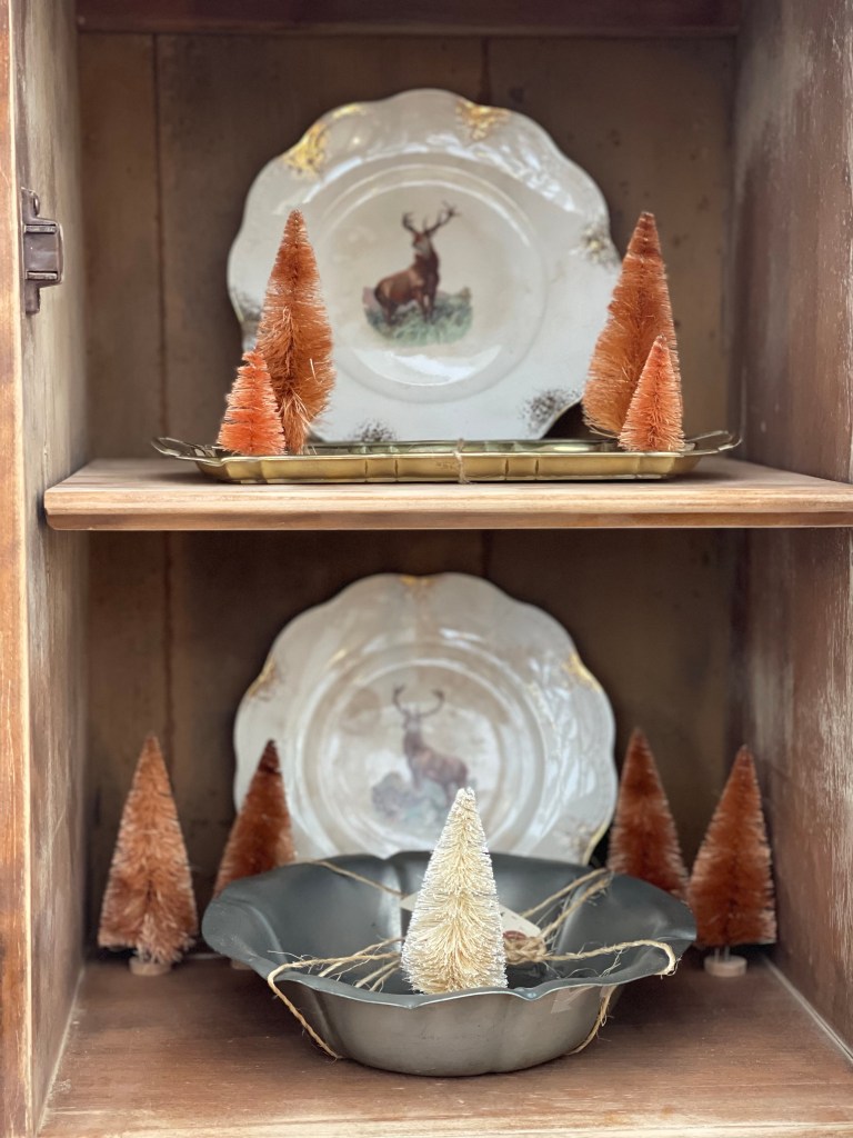 I was so pumped to score these darling festive buck plates and other various deer platters to mingle in.