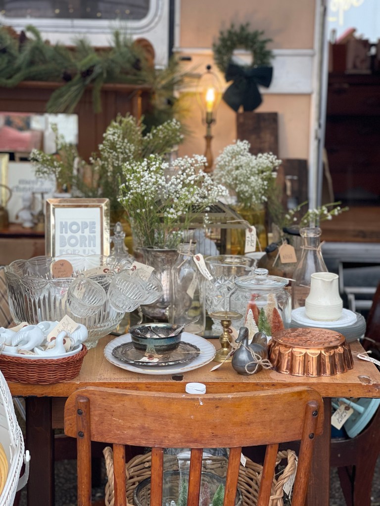 We had picked at several different locations scrounging up every last nod to vintage Christmas we could find. Good news is we sold almost all the vintage glass sets we had scored. Someone definitely got their jingle on with a fantastic party.