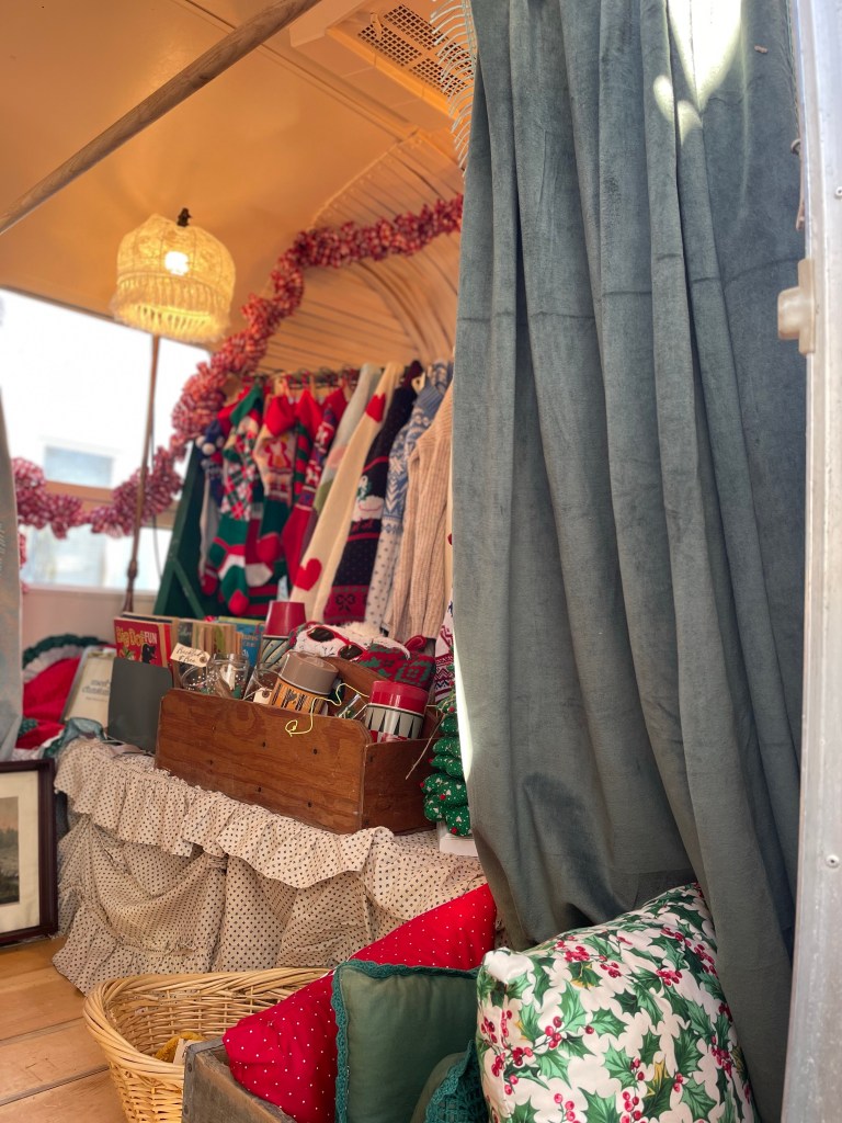 As you made your way into the Airstream, things got even more festive. I created a very fun and jolly set up with all the Christmas feels. Your typical Christmas colors were living it up inside the lively airstream.