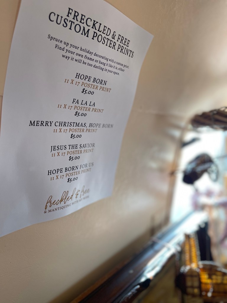 An array of Freckled & Free 11×17 custom graphic prints could be chosen inside. While you could find many already framed artwork of mine throughout the booth, I created some poster prints so you could still nab the artwork, but find a frame you preferred. An easy way to have good seasonal artwork on hand for your holiday decorating.