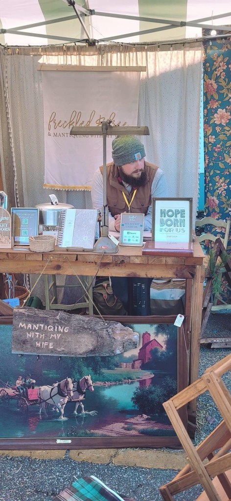 We sold ugly Christmas sweaters for the first time and they went off with a big hit, we sold all the mini lit up Christmas trees we had picked, the large vintage cart, the burnt orange rocker, many, many smalls, Freckled & Free custom jarred winter scenes and frames, Hosanna Revival 2024 Planners, bibles and notebooks and so much more. We talked to sooo many of you and heard some of your amazing stories. At the end of the day it was a joy. All the hard work to accomplish it was worth it. Thank you for supporting us and finding beauty in what we find beauty in. We pray your 2024 is as swell as you are. And we’ll give a hats off to more pickin’ and grinning’ in 2024.
