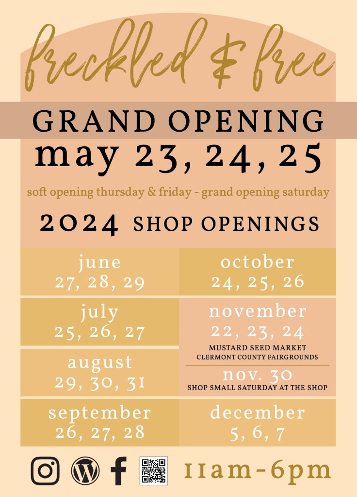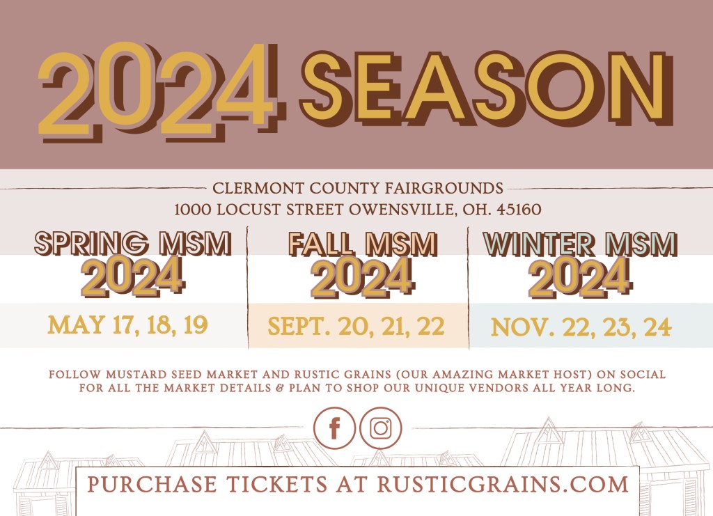Save the date for all their 2024 Mustard Seed Markets. We’ll have another photo op. set up in the airstream at the fall market and an actual full booth to shop at the winter market this year. So plan to shop small and come out and see us.