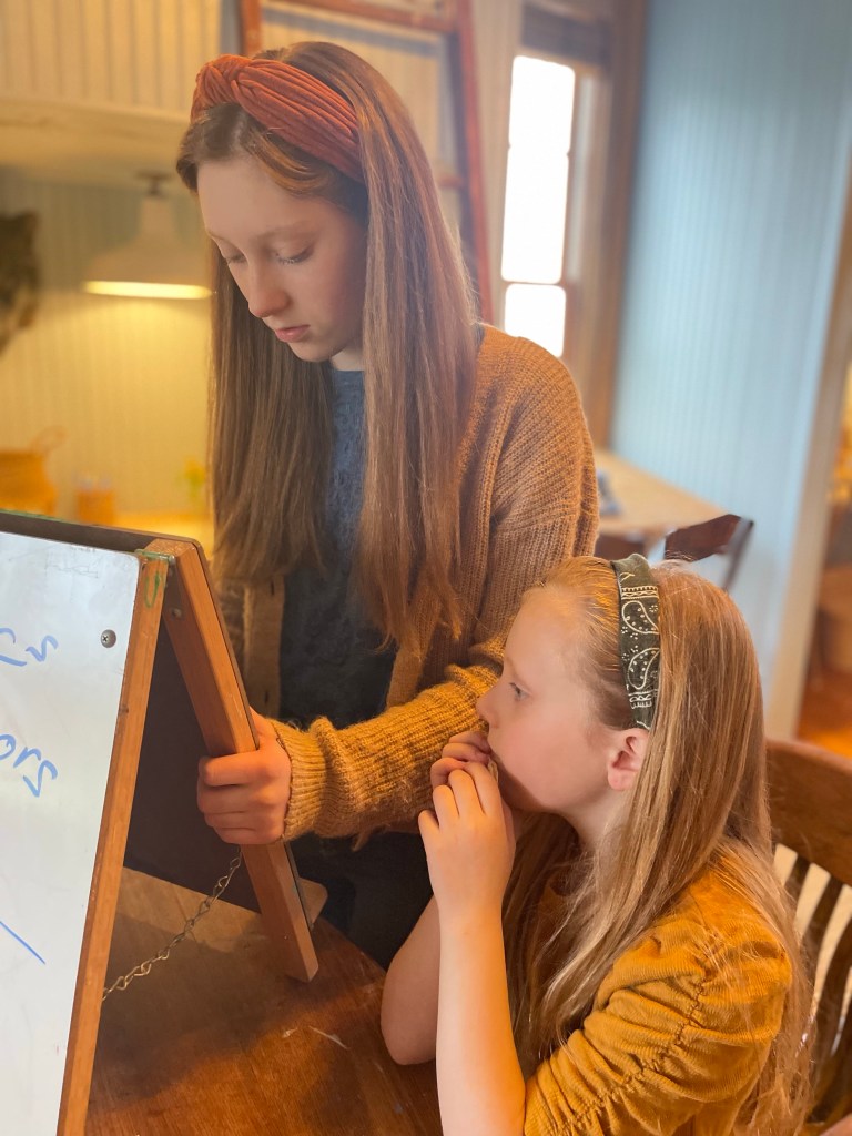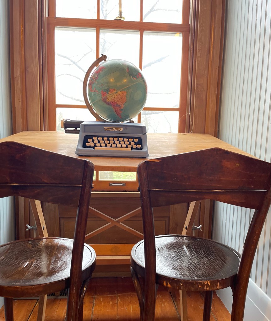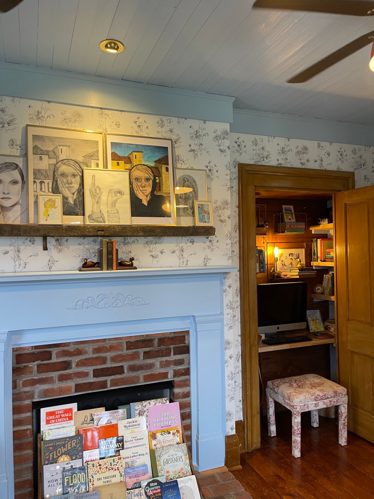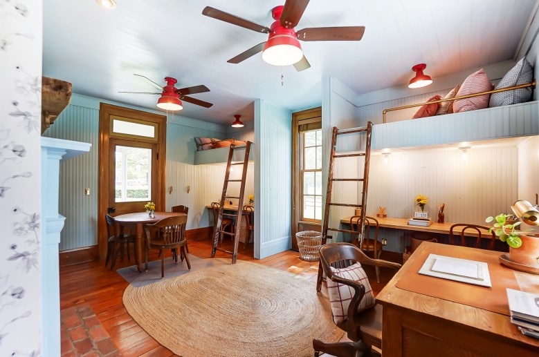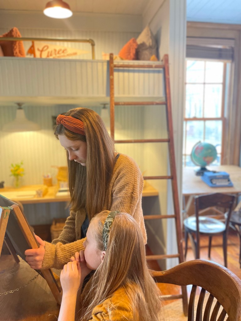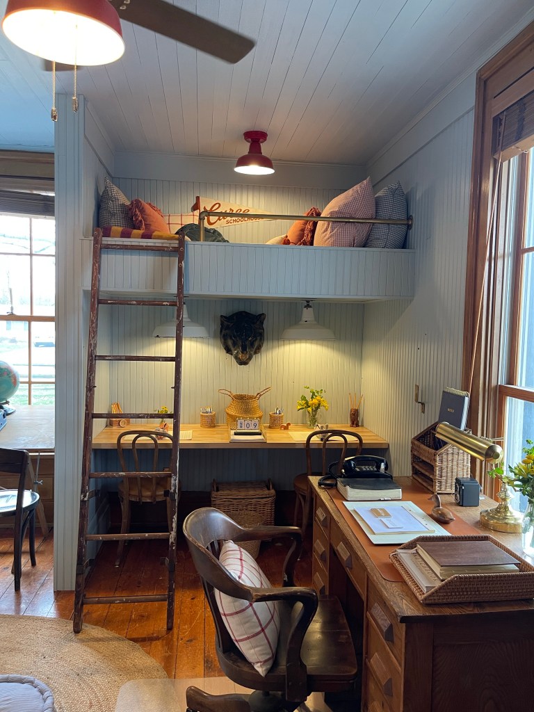We did try to create some privacy with the split spaces. But snuck in any additional work spaces where we could. If you have ever homeschooled, or have kids for that factor, you know some days they just need space from each other. I couldn’t believe how well my antique adjustable art desk fit in front of the window. Needless to say, they had options to move if needed.