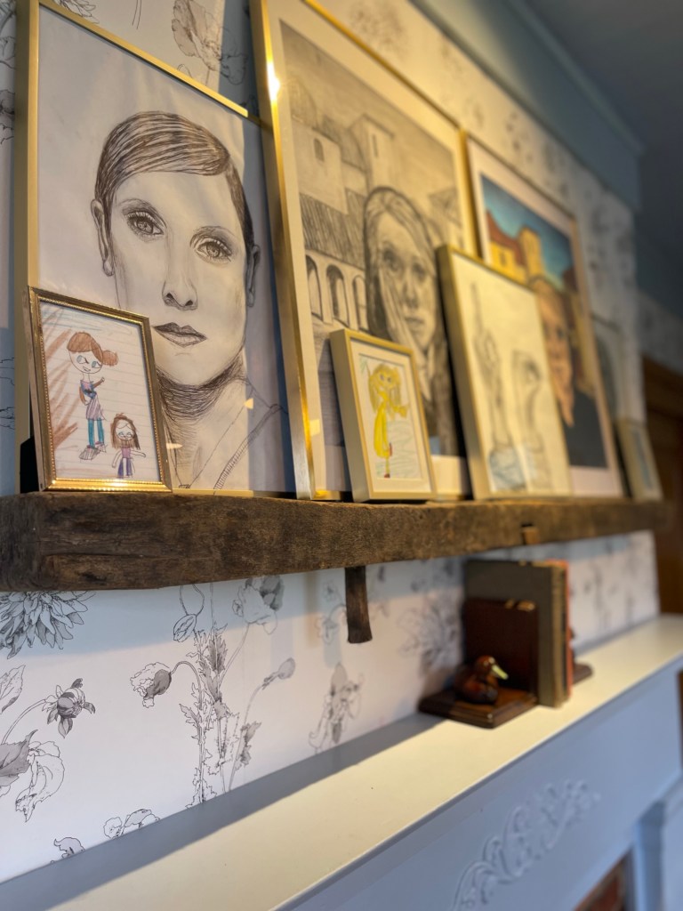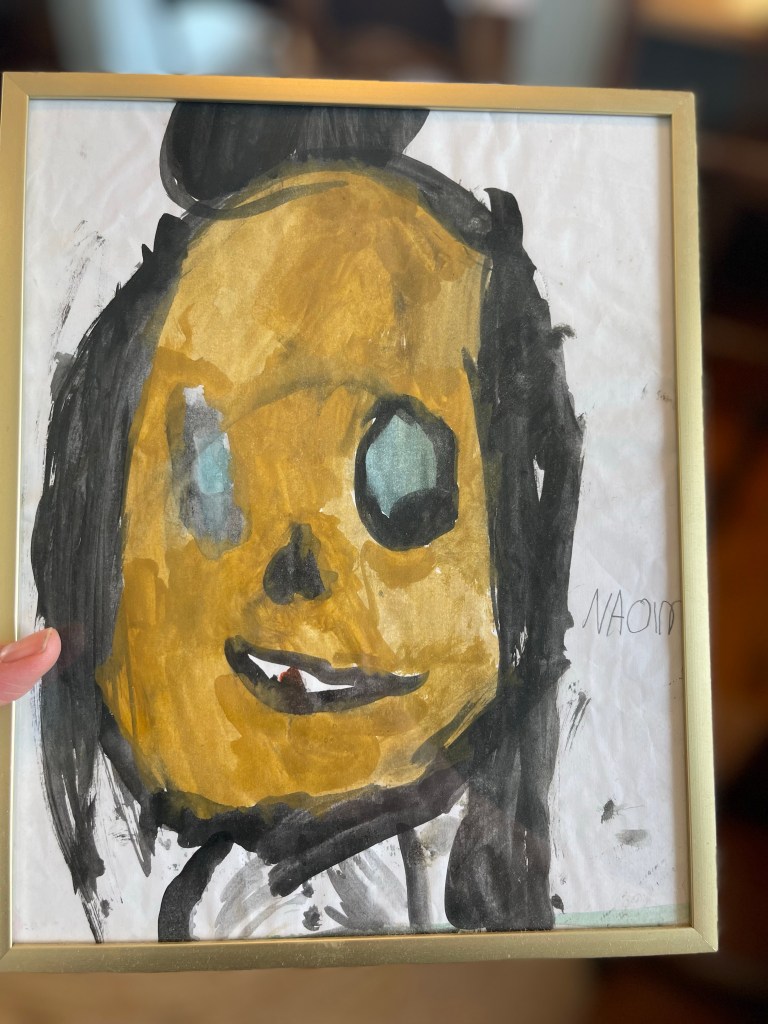By now you should know I’m a huge fan of kid artwork. I think we should totally open a kid art museum. Maybe I will someday? It’s just precious. For example, check out this self-portrait Naomi did, some people think it’s terrifying, I think it’s the cutest thing I ever saw and I may say it’s one of my favorite pieces in the space. The truth is she really was trying so hard, she wanted it to look just like her with all her heart. In her little innocent sweetness, that’s how her mind could paint a picture of her. She was so proud and we truly will cherish it forever. It’s where her heart could tell the story of herself from her viewpoint at this age. I think she expressed herself perfectly. A clever little “wild” flower always fighting hard to figure things out.