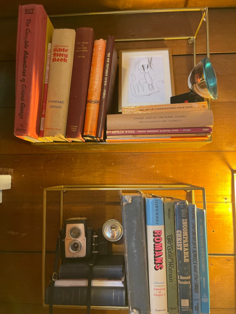 Styled with fun book collections and antique cameras Tom gifted me when we were first married. Just a hidden space of fun and wonder. We packed in a punch with this closet and it met a very great need.
