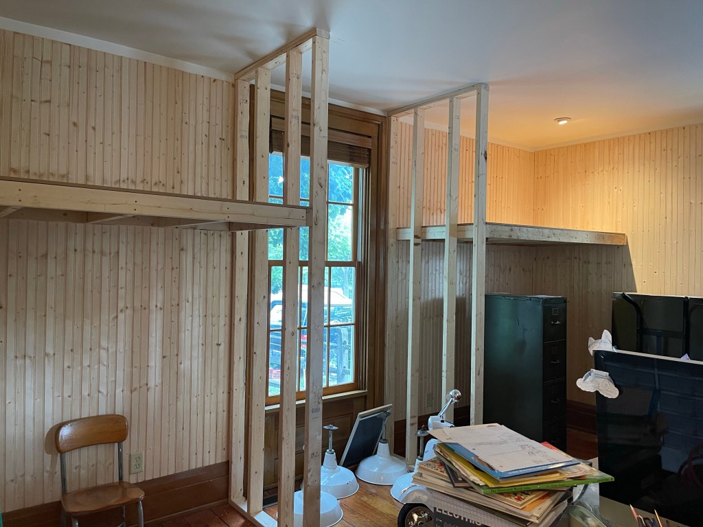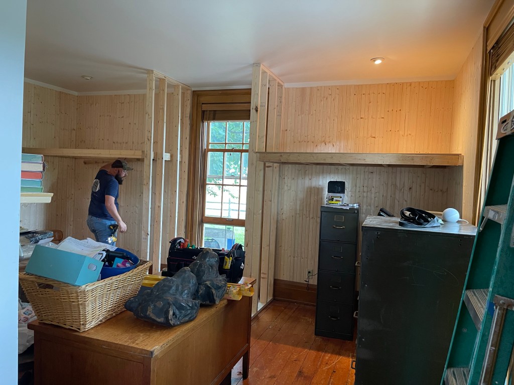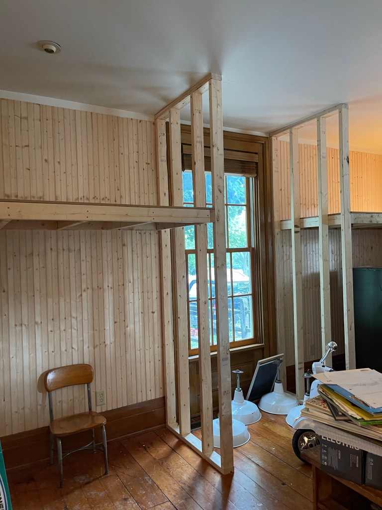 Once the wallpaper work was complete, it was time to finish up the bunk space and desk spaces. Again, trying to customize as much elements in the room as we could, maximizing as much space as possible.