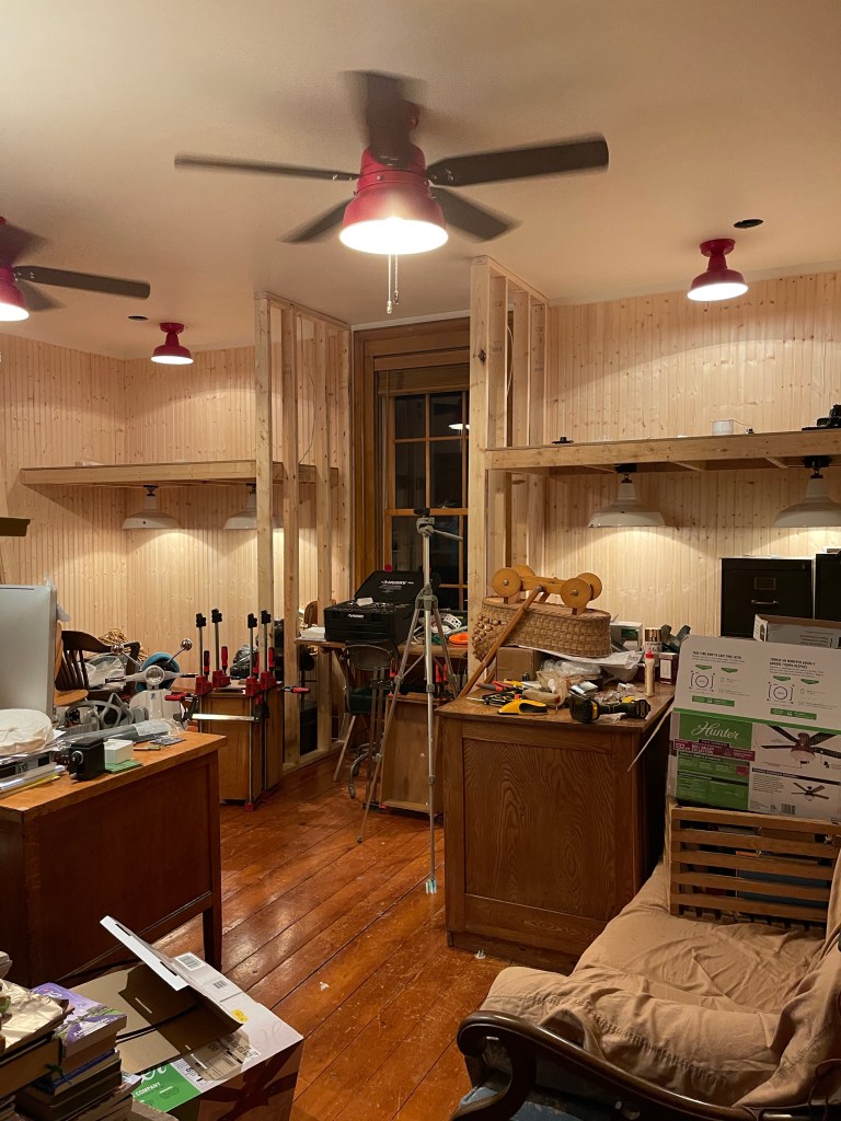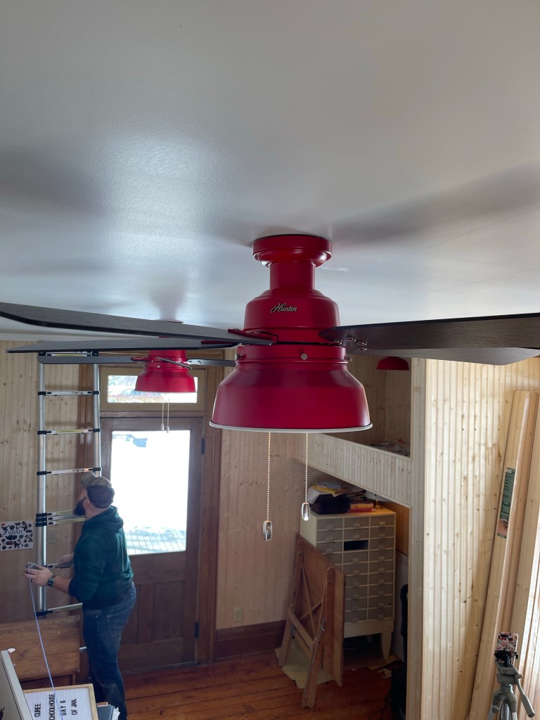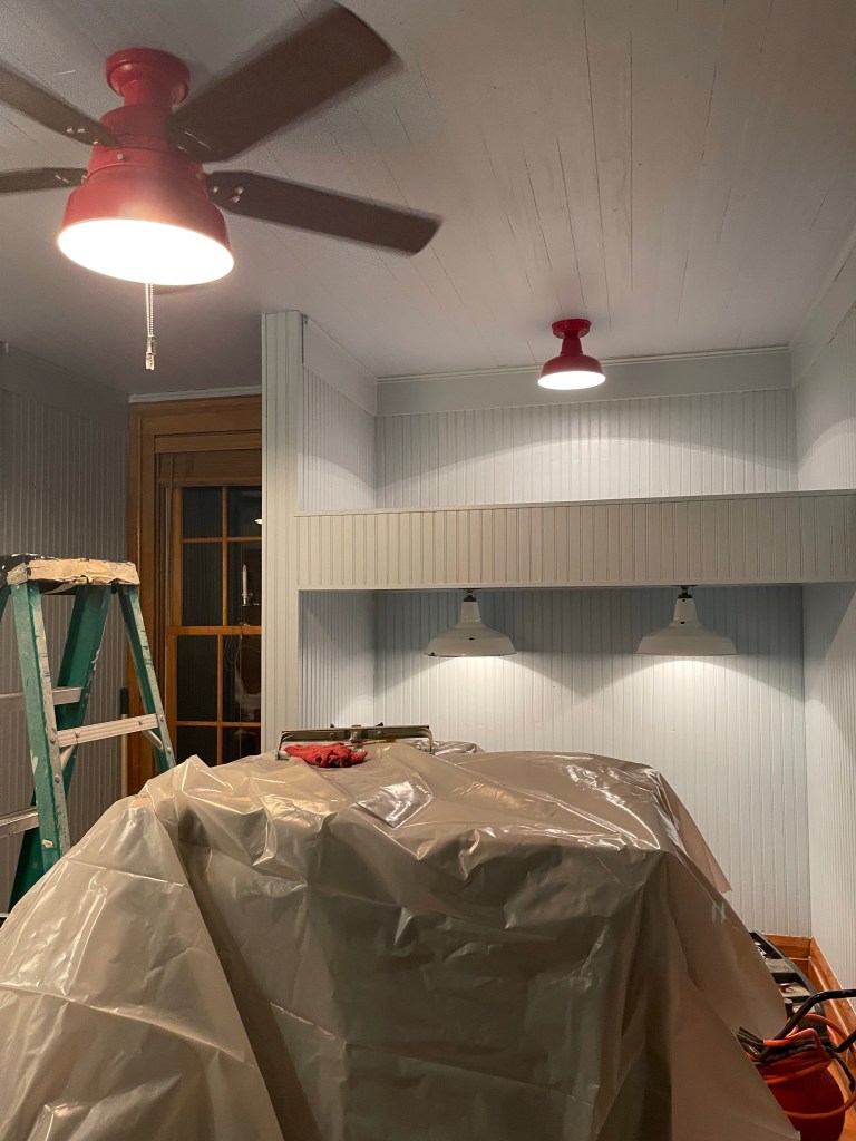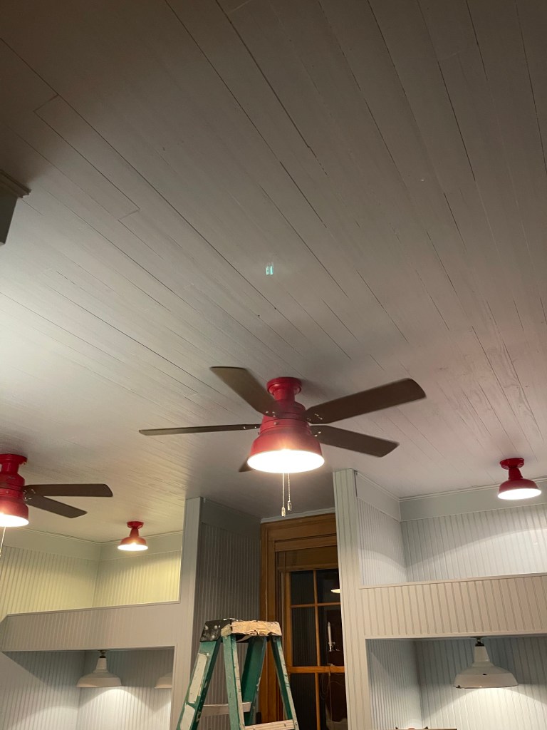 I also finalized the paint choices and this portion of lighting to move the project along. We chose Home Depot’s Marquee Paint with slightly different blues for the ceiling and walls. We decided to go with Hunter ceiling fans to keep that room cooler in the summer. And as I said I was pumped to finally put my red and blue color scheme vision in our own home. Things were really beginning to take shape.