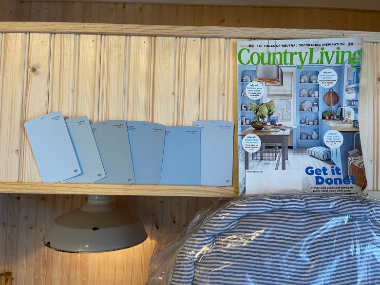 Some of my design inspirations came from years of pinning on my Pinterest board. I had so many ideas I loved but what I couldn’t get out of my head was a massive three floored antique shop we had went to many years ago that was covered in blue wainscoting and charming details. Every corner of it being crafted with custom woodworking, layering the space with texture, beauty and age. It was so dreamy. I was even more reminded of my love with this color concept from my favorite, Country Living magazine. Over the years I was also drawn to the red and blue combo that I saw was pulled off so well in many great samples I had collected.