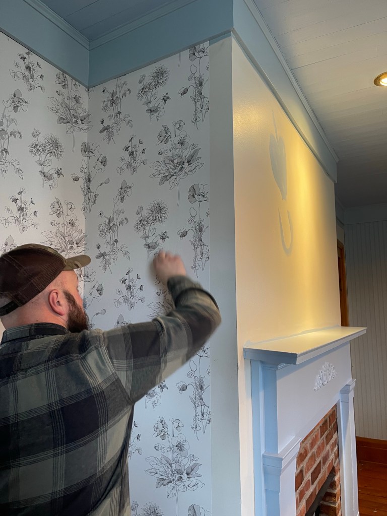 It took 100% of all Tom’s focus to install this wallpaper, like me he is a bit of a perfectionist. We were freaking out with how much we loved it.