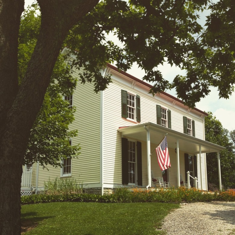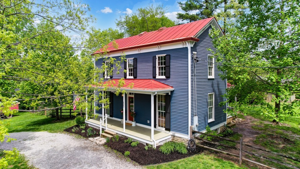 We had to go with a whole new color, as at the time, the current yellow options available were more neon yellow or cream-colored. With the original photos of the farmhouse showing in a grey blue tone, we decided to go back to its original roots and completely change the exterior color of the home.