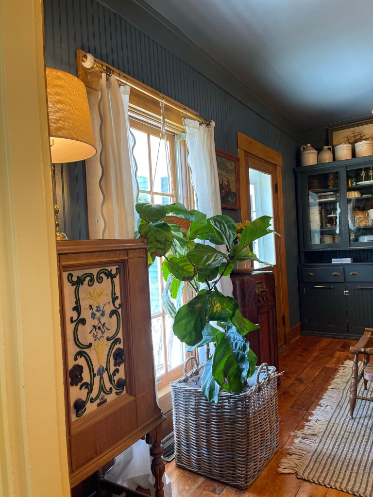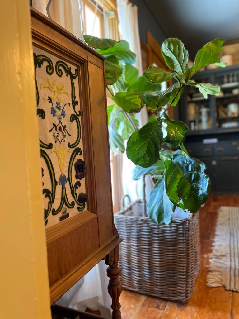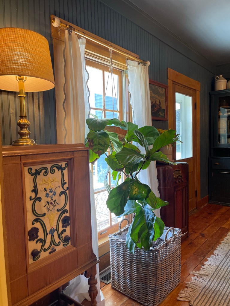 And then we tried these beautiful antique radios we fell in love with. It was snug and cozy. A his and hers radio collection. Mine with the beautiful embroidery on the left and Tom’s more masculine pick on the right of the fig tree. Beauty and warmth together.
