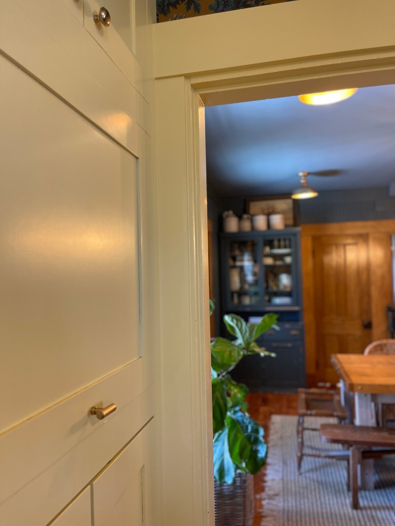 With the kitchen now being exposed through the dining room, I needed to spend some more extra time thinking through how the spaces would live as cohesively as they could while also being separate spaces. I didn’t want to make it all look like one, but wanted each room to compliment the other. We knew the day we moved in that the kitchen would need to be calmed to one color overall on the cabinets.