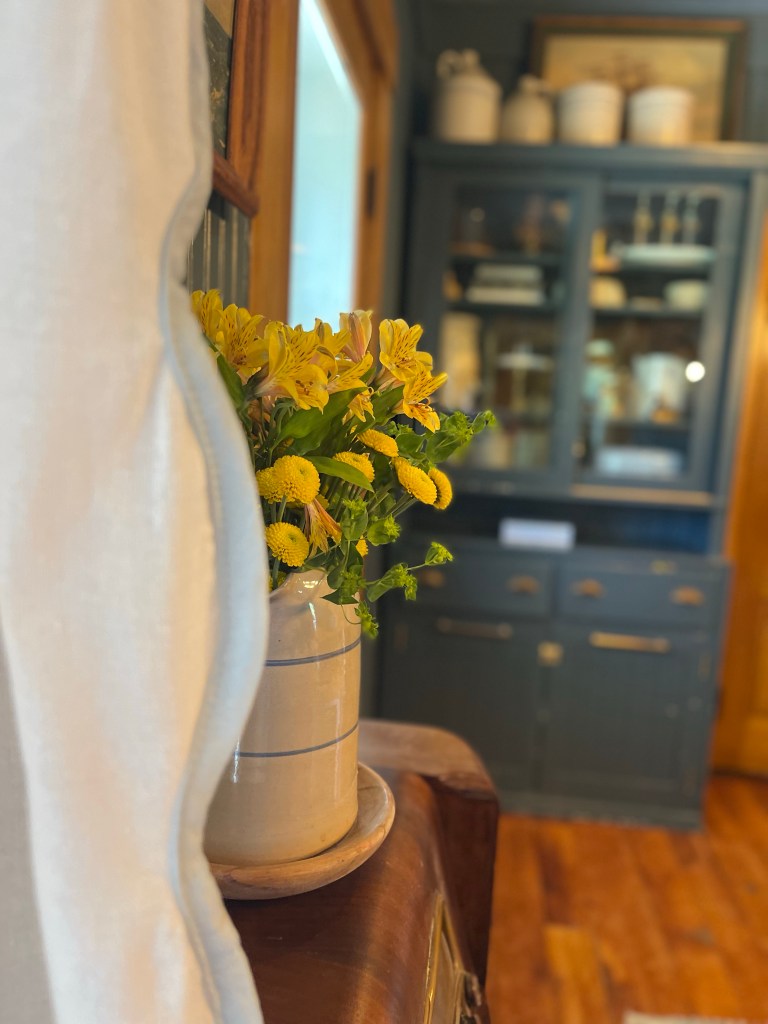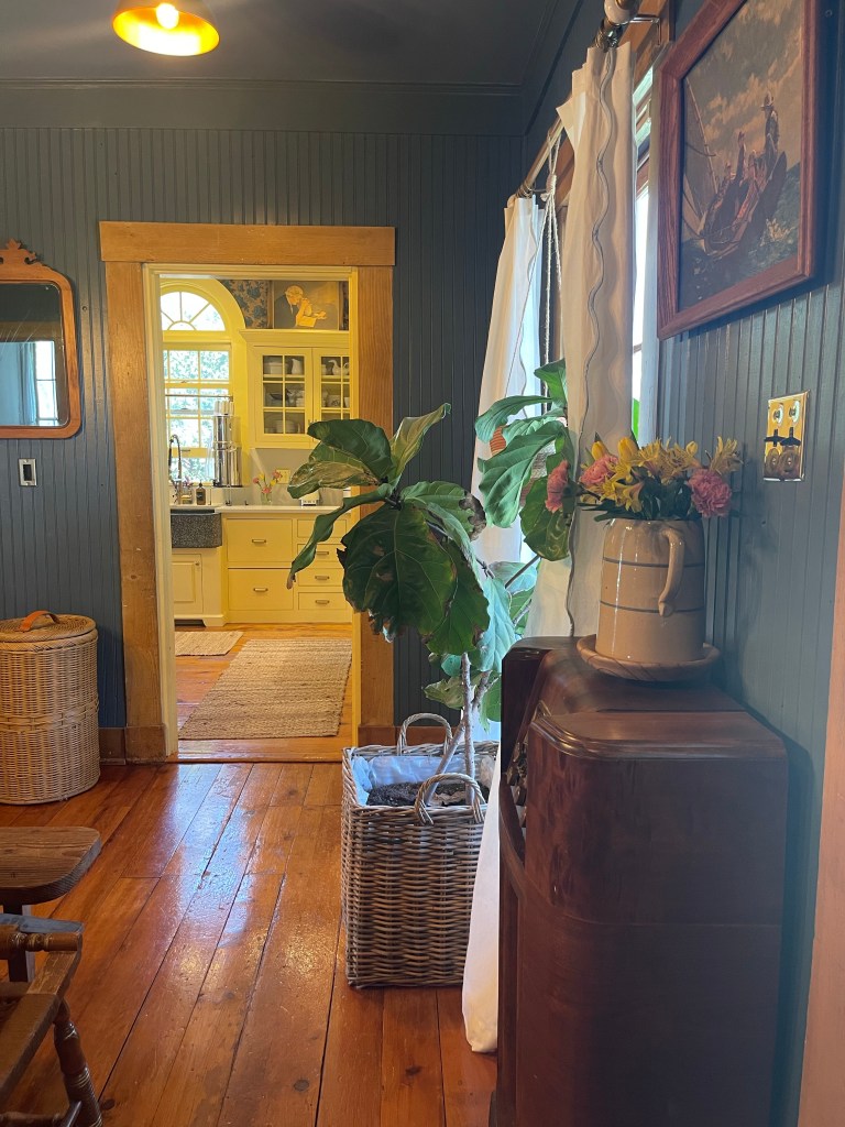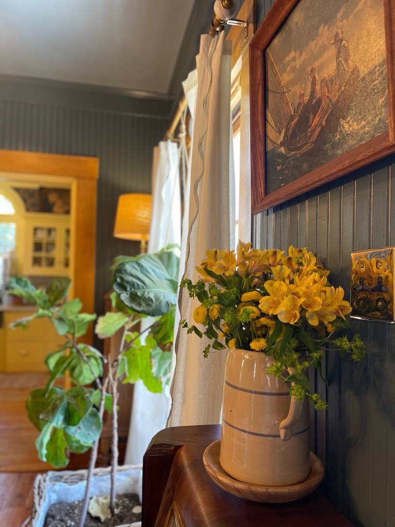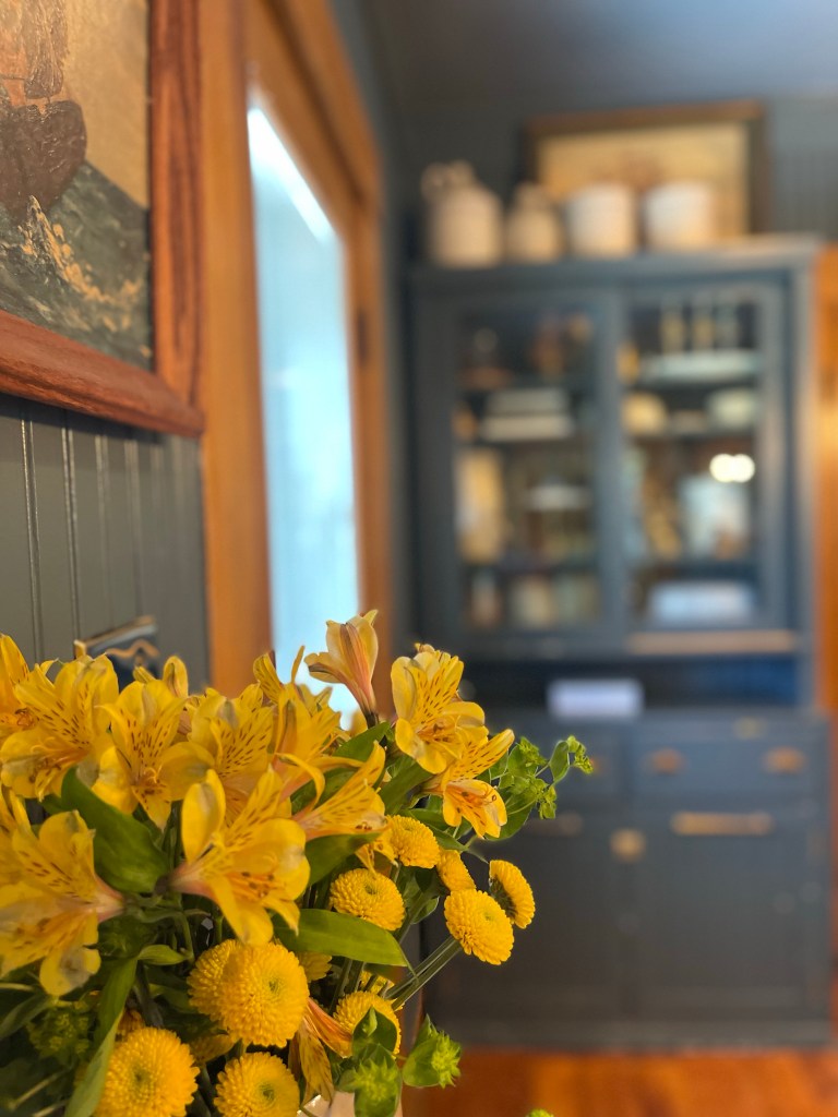 In all fairness, it must be shared a little in order to show the accomplishing design of the two rooms existing together. Two different colors working in balance. Harmony? Yes. Cohesiveness? Yes. It’s something quite lovely. Bright and cheery against the dark nantucket dining room. Those daffodils peaking with happiness and joy. They seem to say to me, “Pleasant words are as an honeycomb, Sweet to the soul, and health to the bones.” Proverbs 16:24