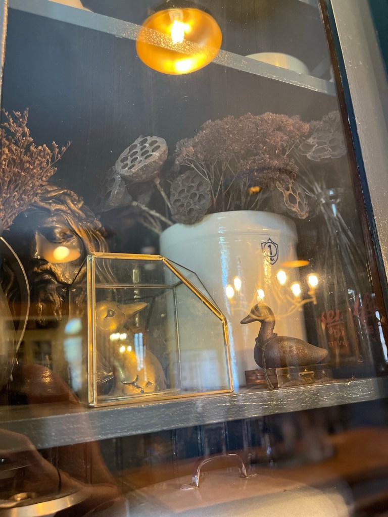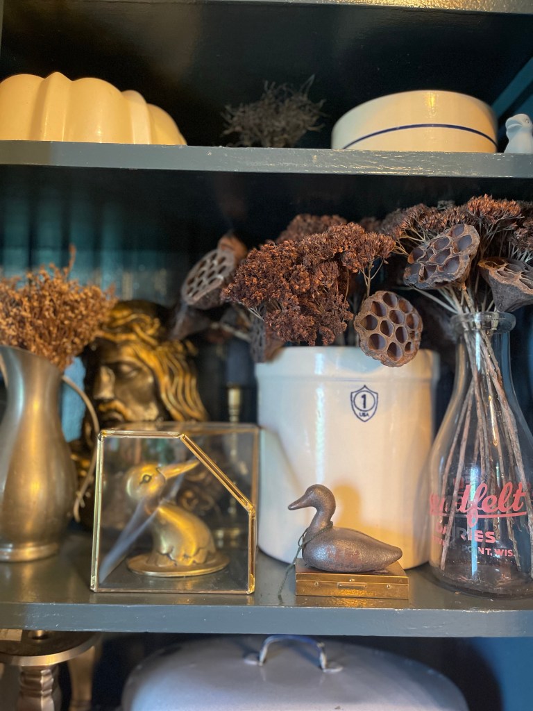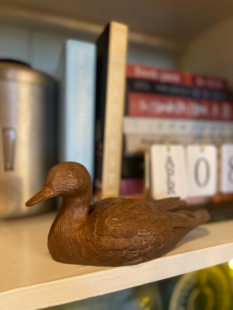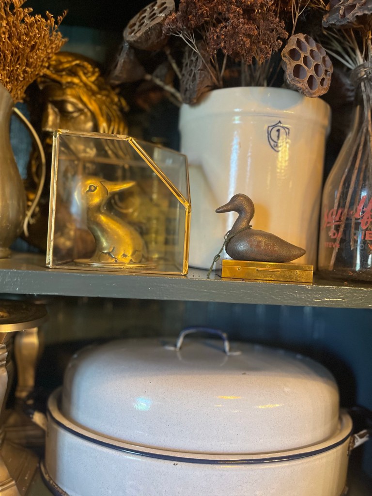 In addition, mixing in my collection of beautifully handcrafted wooden and brass ducks throughout. One could get lost in wonder admiring it all, or maybe just me?