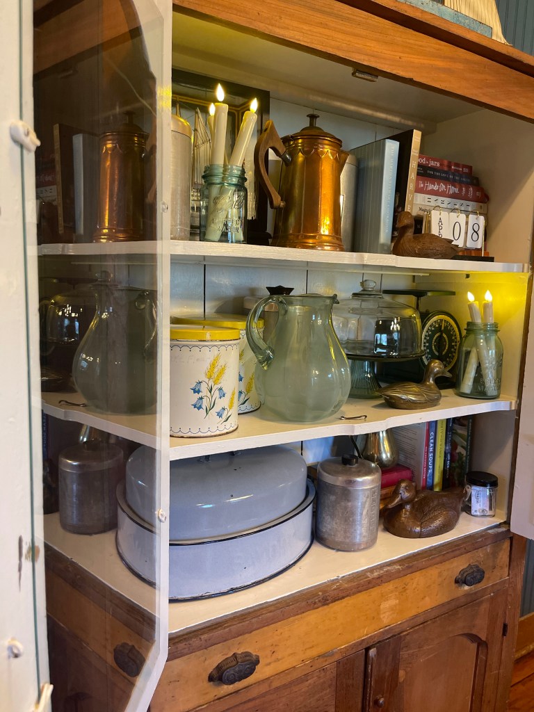 But if I could go deep for just a moment as we wrap this up—what an example of life these very things have displayed!? Little by little they have endured our hard use, yet stand, remarkably beautiful still. And now, we have the most beautiful assortment of which nothing is perfect. Things that were freshly restored or new, now having scars and dents. I believe, together they tell the story of life. Gathered together in a home, these things make the most beautiful displays. In essence, this period of time waiting to complete this project, taught me to love these truthful story tellers that developed in the meantime. They are real in all their imperfections and I do quite like the story they tell. Nicks and chips of paint. I now see their lesson here. We had been creating our own antiques, and its revealed to me that a home weathered with time makes the homiest of homes.