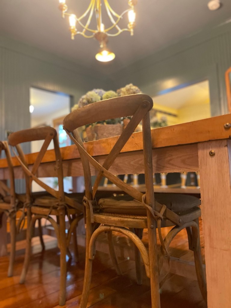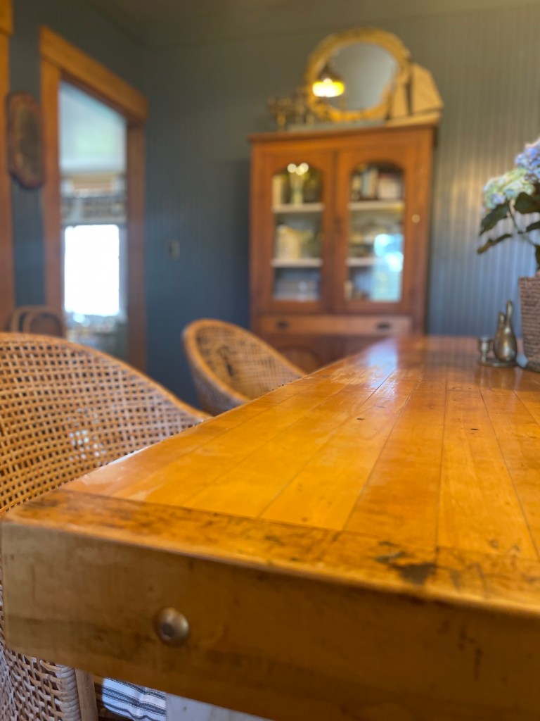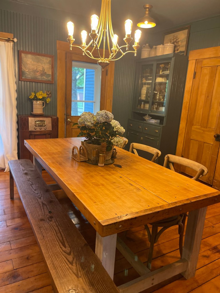 Our dining room table was handmade from my father, a skilled carpenter, who passed in 2019. He made it for us out of an old heavy duty work bench that was Tom’s father’s. An extra special build. A piece we will treasure for a lifetime. The cherry on top of it all, something from both of our dad’s. A build filled with memories of times past and ready for many more to come with our family for generations.