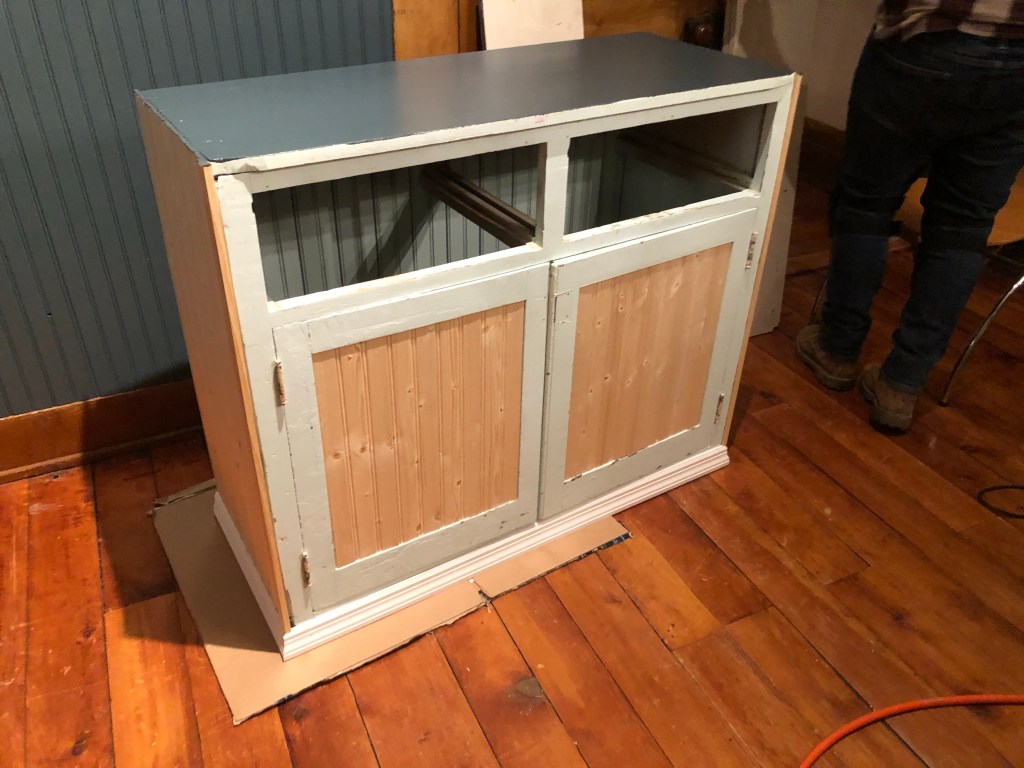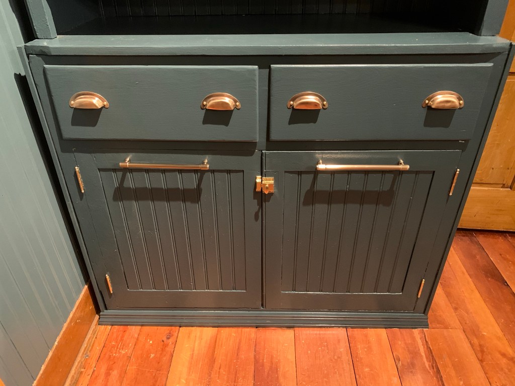 For a more cohesive look we added bead board to the bottom doors, cleaned up the drawer pulls and added new hardware on the piece.