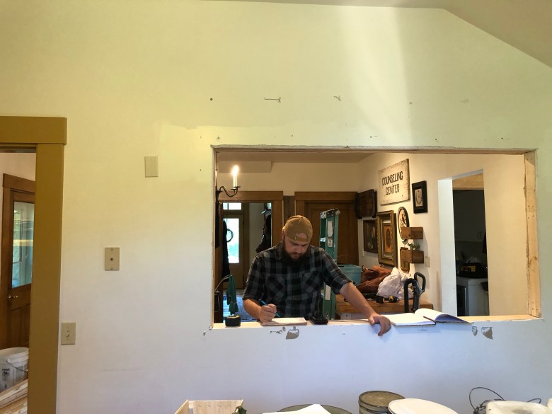 Because our kitchen was located at the very back of our home, and the space I was needed the most in, I had a hard time keeping up with what my little kiddos were into while I was in there. Running back and forth was a constant thing to check on them. We knew I had to have better eyes on the rest of home from that kitchen. Our four kiddos were small and into it all. Knowing this we knew one thing had to happen. We needed to open up the wall.