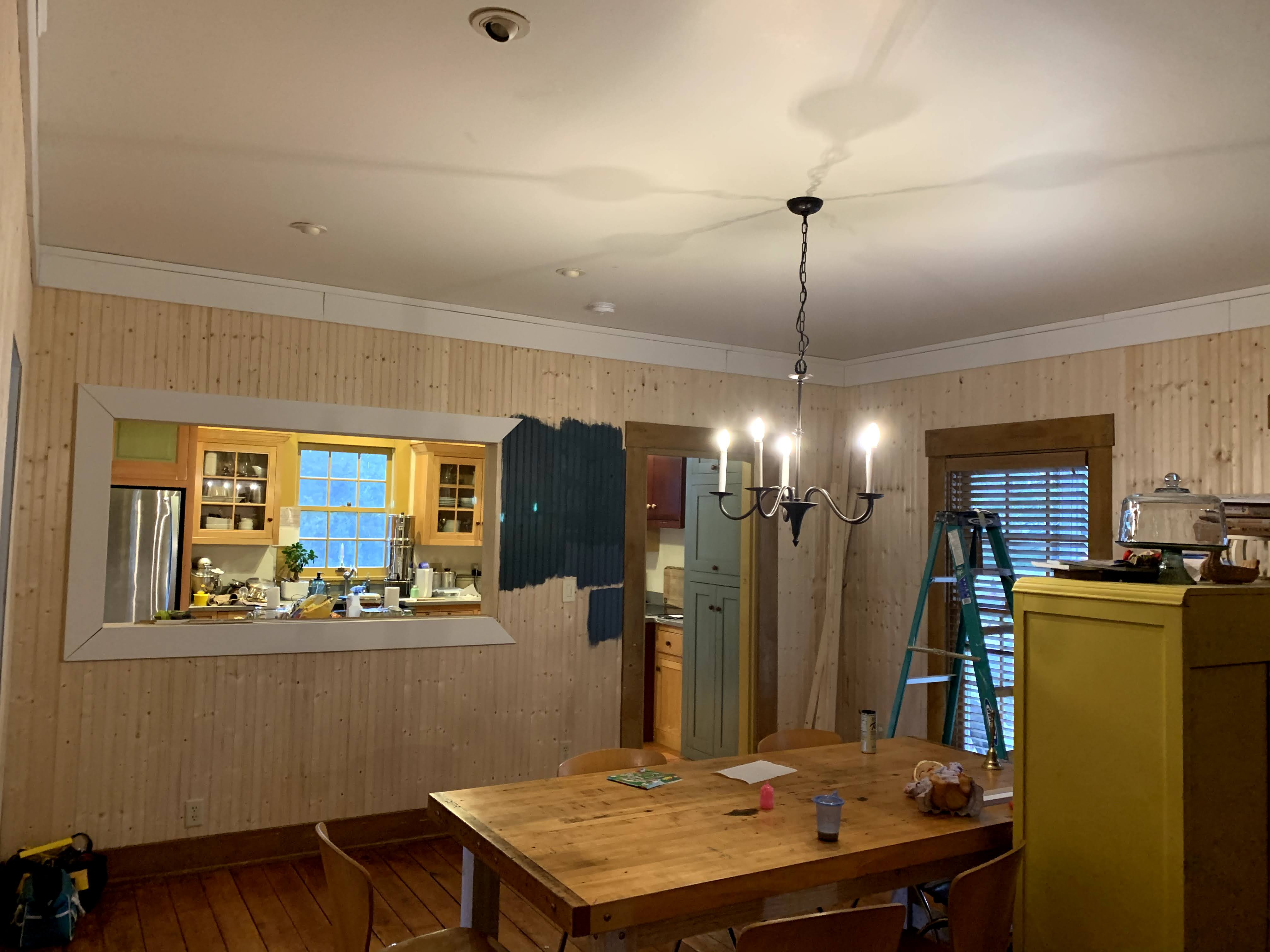While I enjoyed my time away, I was happy to see that the color really made all the original wood tones pop, but I was definitely not feeling a bright white ceiling against it as I figured I would feel. It was too loud. Aligning with my desire to color drench the space.