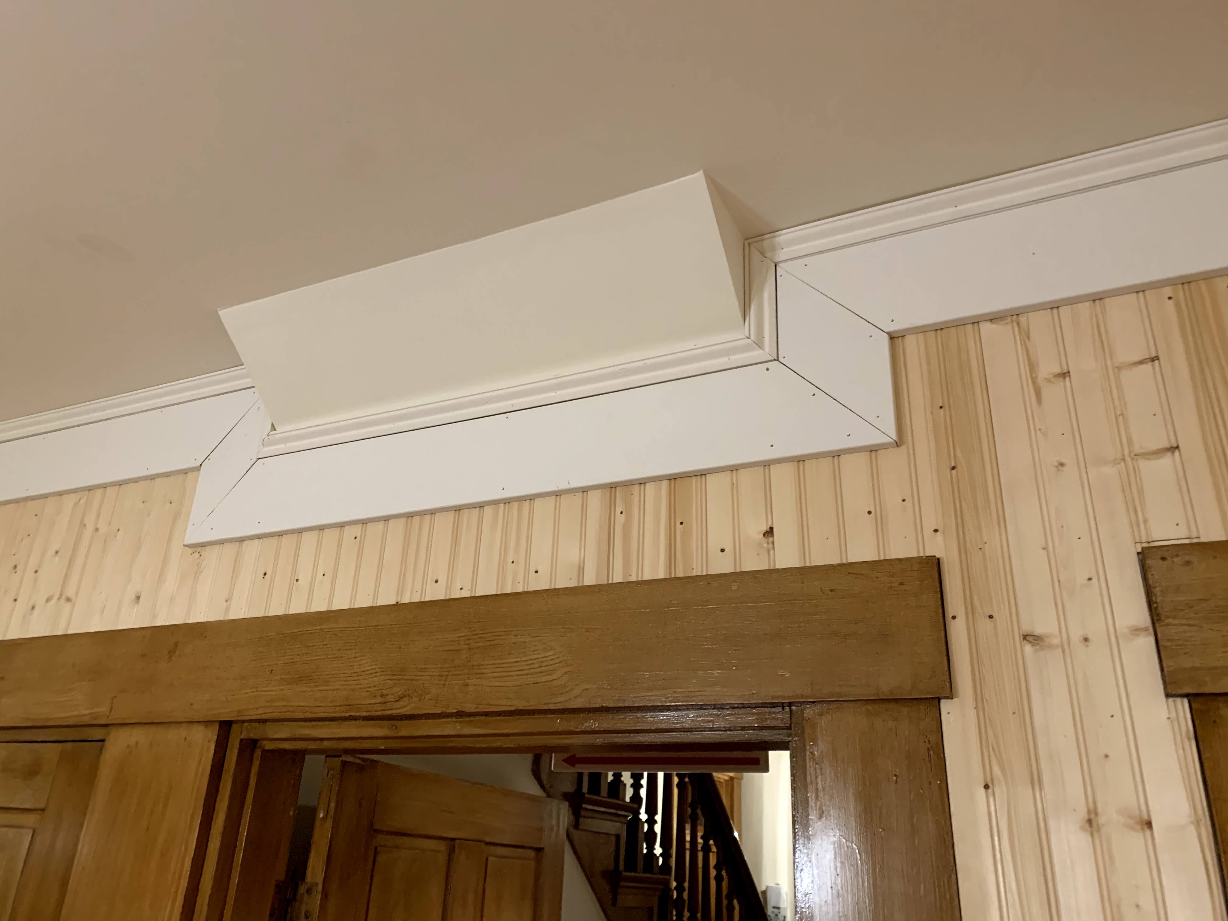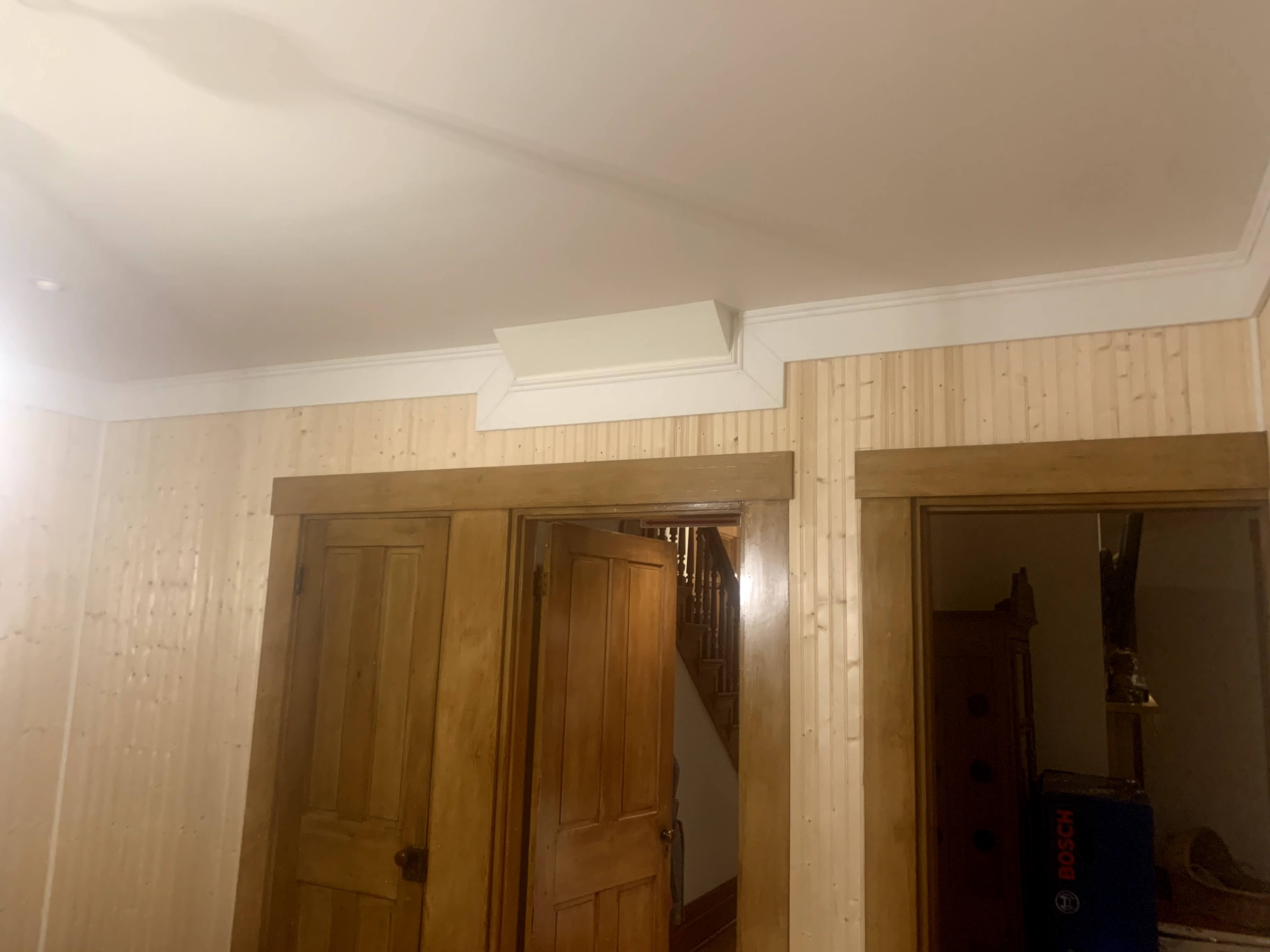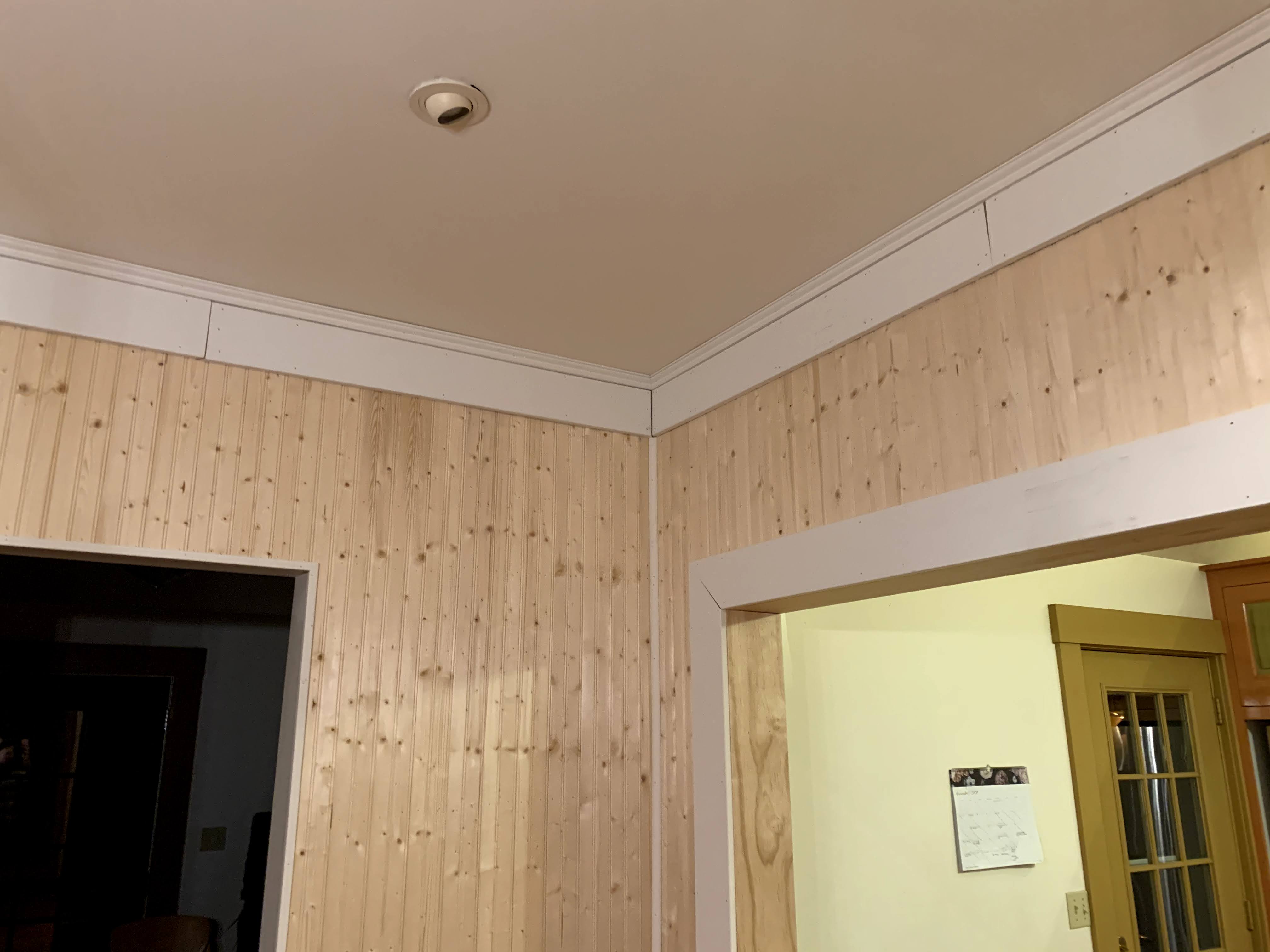 We knew we wanted to add large thick trim around the space to dramatize it even more. To save some money but accomplish the same look as an old farm house we used MDF since we were color drenching the space anyways. Tom learned some new tricks trimming and cutting angles and we both grew grateful for the amount of miracle working a good caulk job can do to clean up any mistakes before paint.