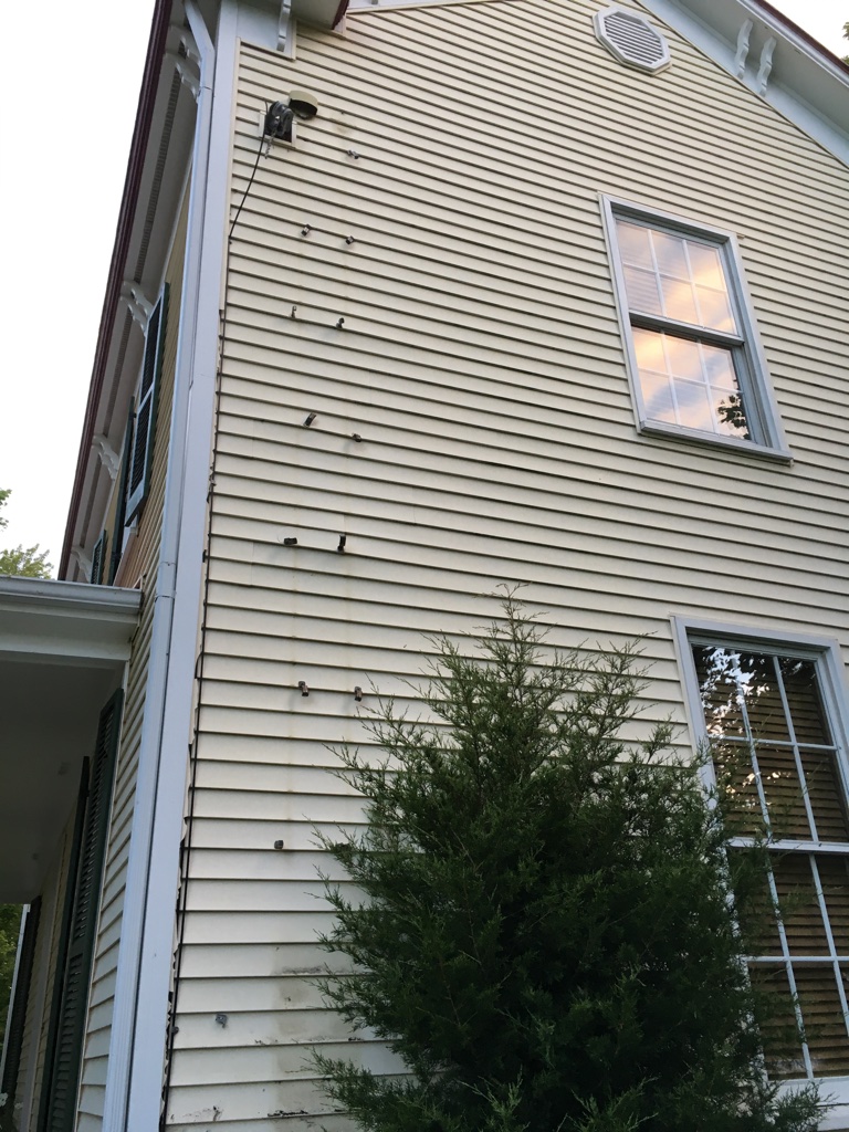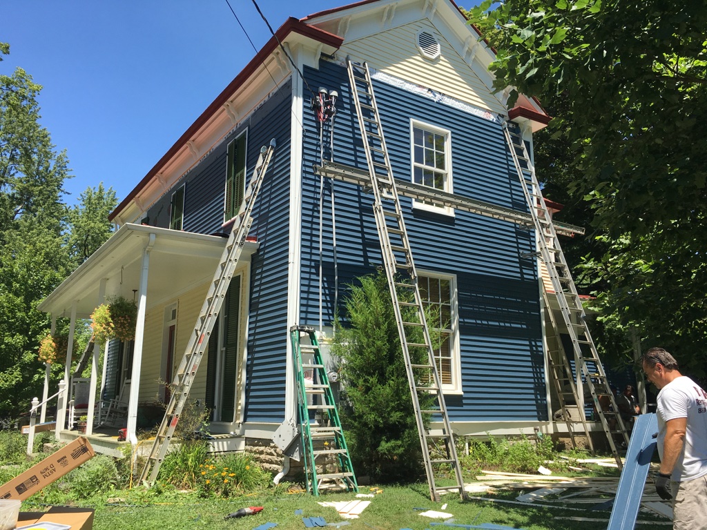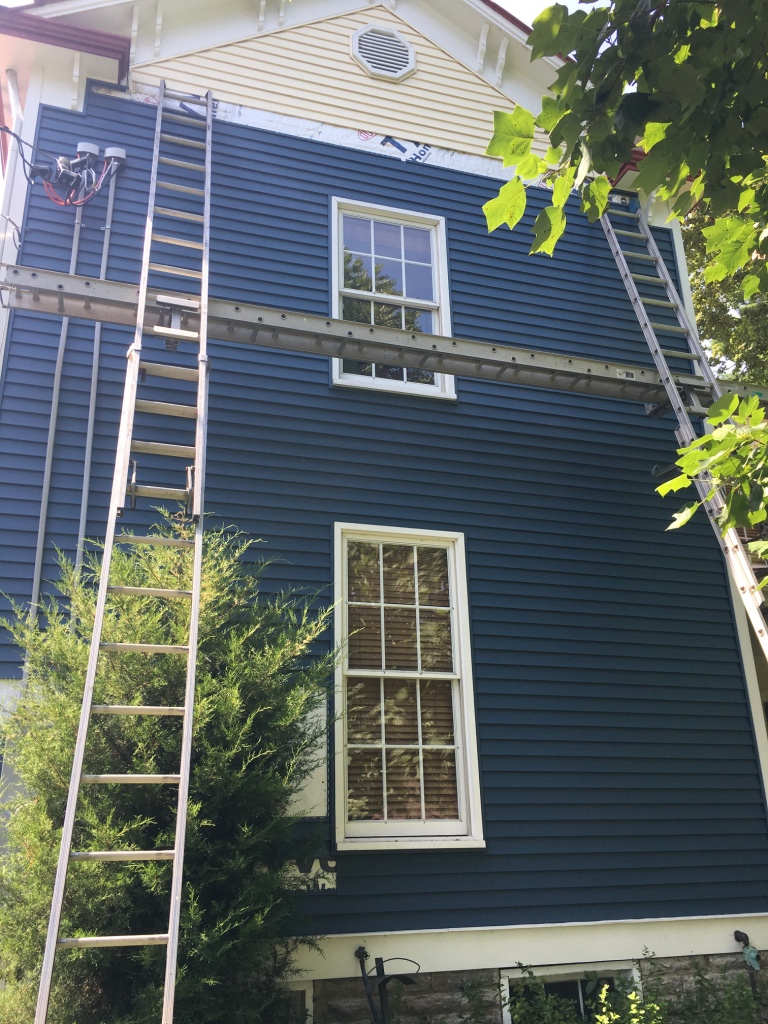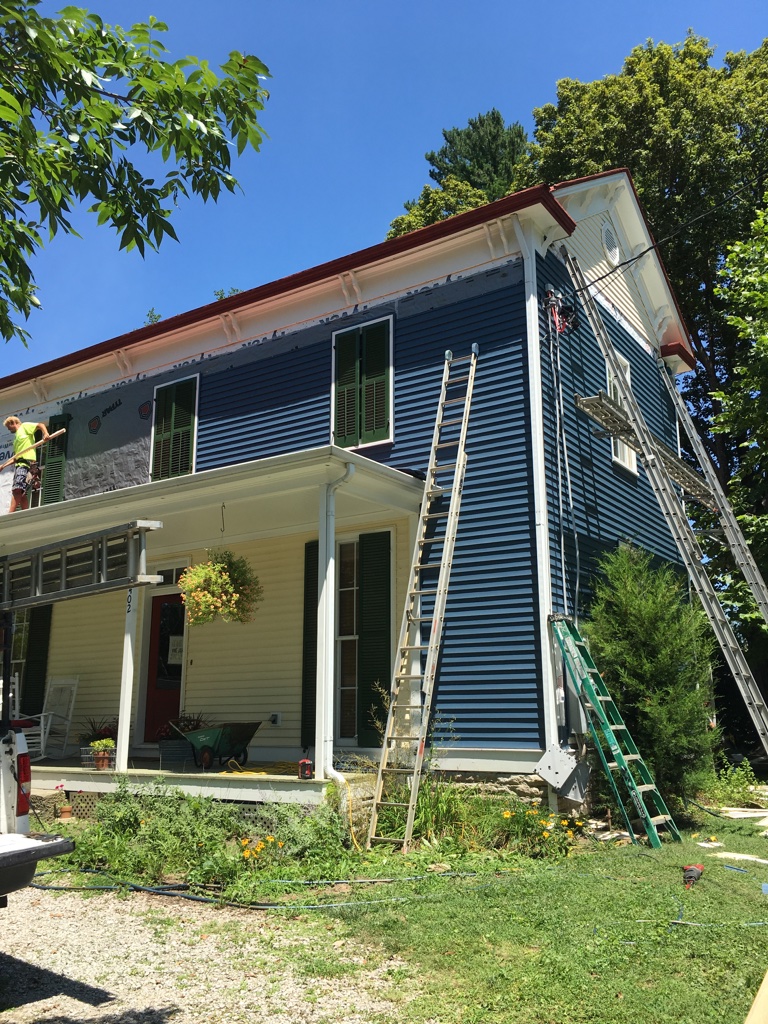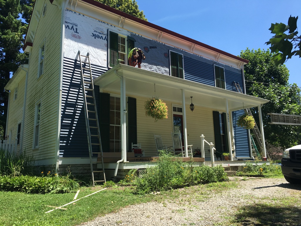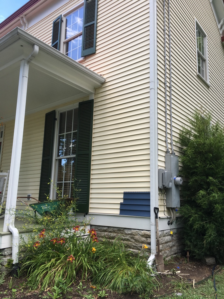 We so loved the yellow farmhouse we had purchased, but unfortunately, when this happened, they were no longer selling the matching siding.