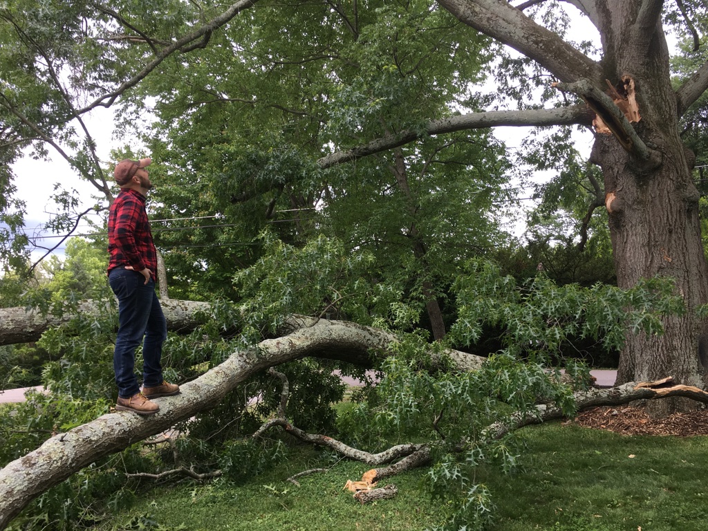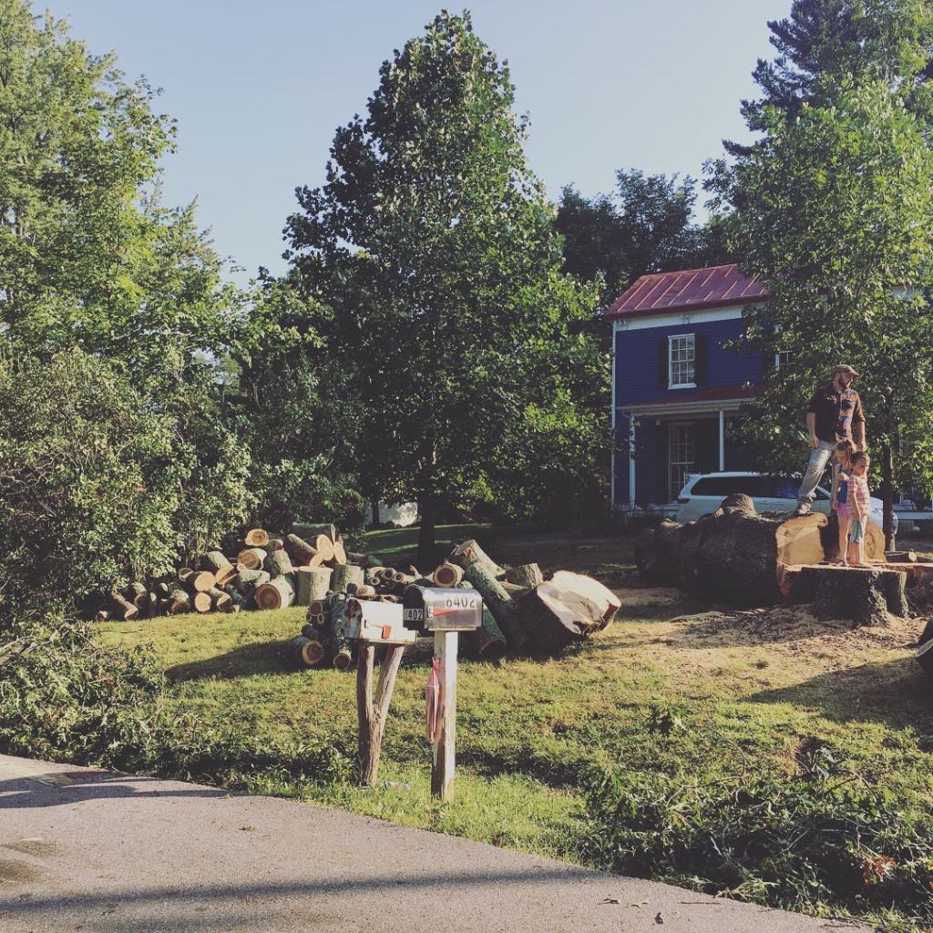 Looking back on my inspiration picks/mental mood board, I knew a deep rich color was coming. I also felt inspired by our exterior makeover that had to happen in the space back in April of 2017. A large chunk of a tree fell on our house, ripping the siding down on the right side.